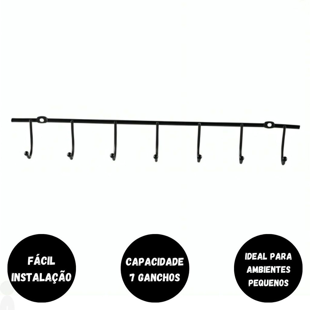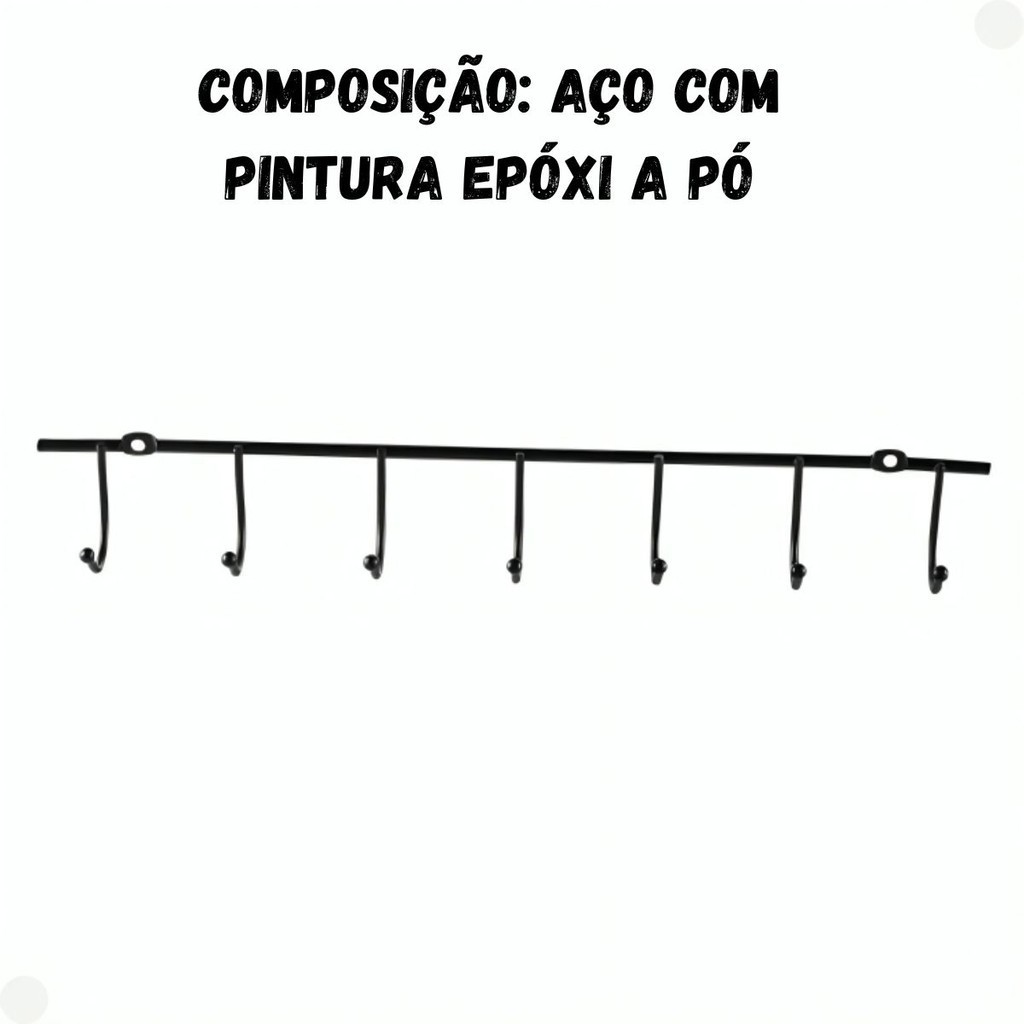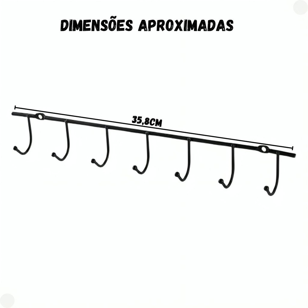 Suporte Barra Aramada Organizador Cozinha Suspenso 7 Ganchos - Mor