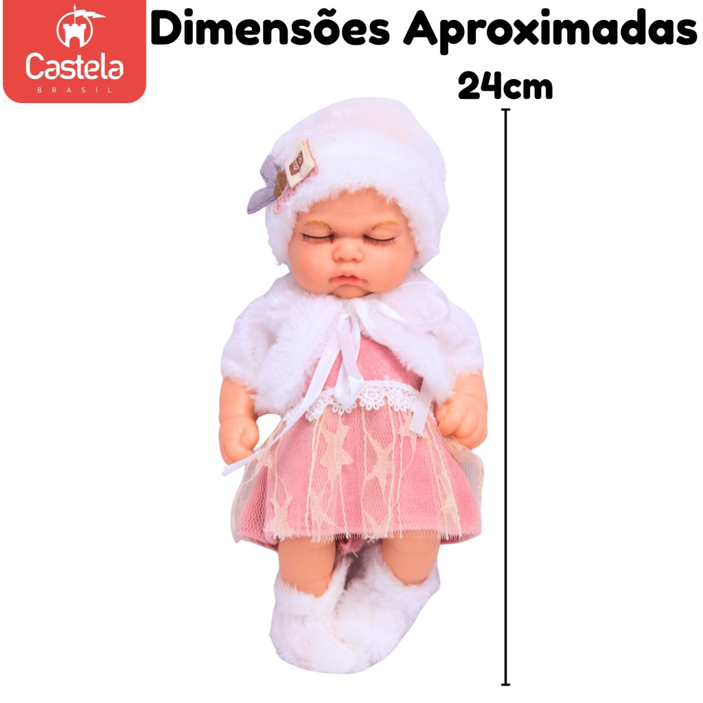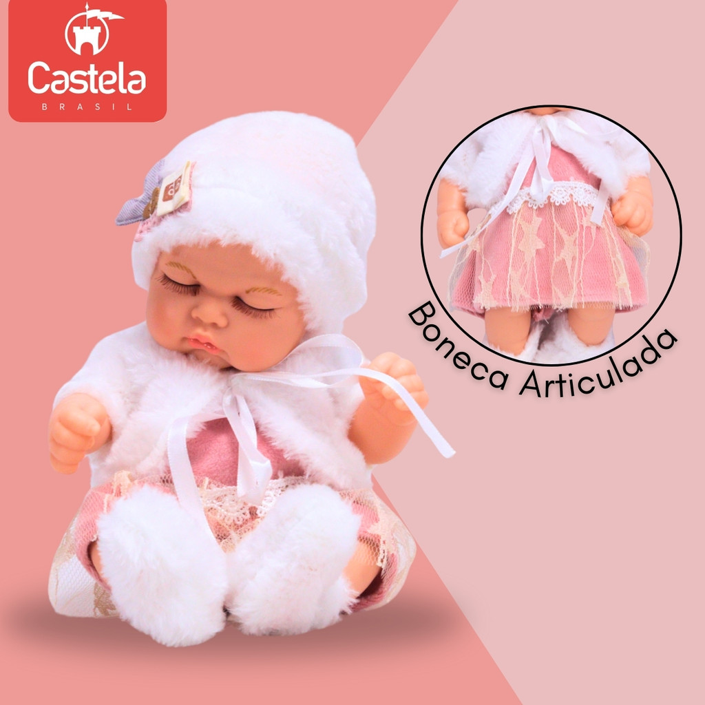 Boneca Bebe Reborn Articulada Dormindo Rosa C/ Acessórios - Castela