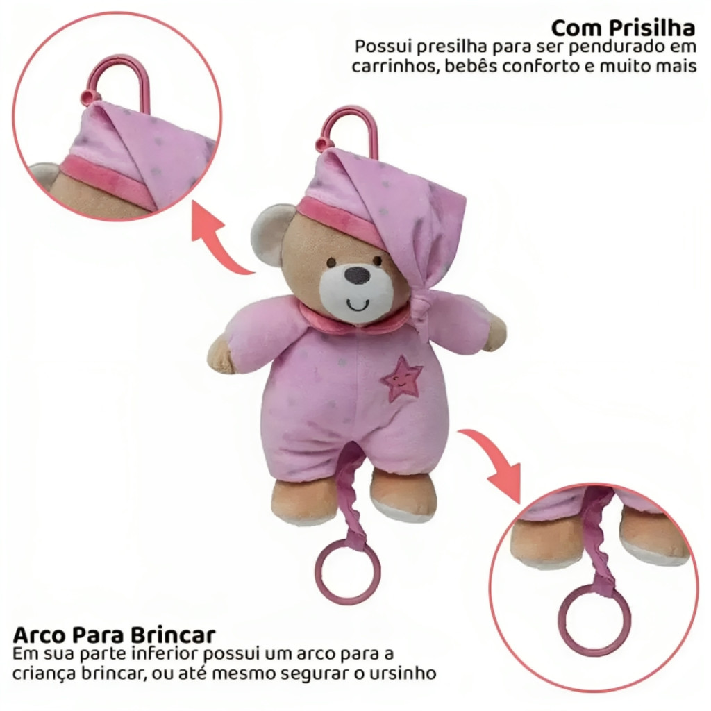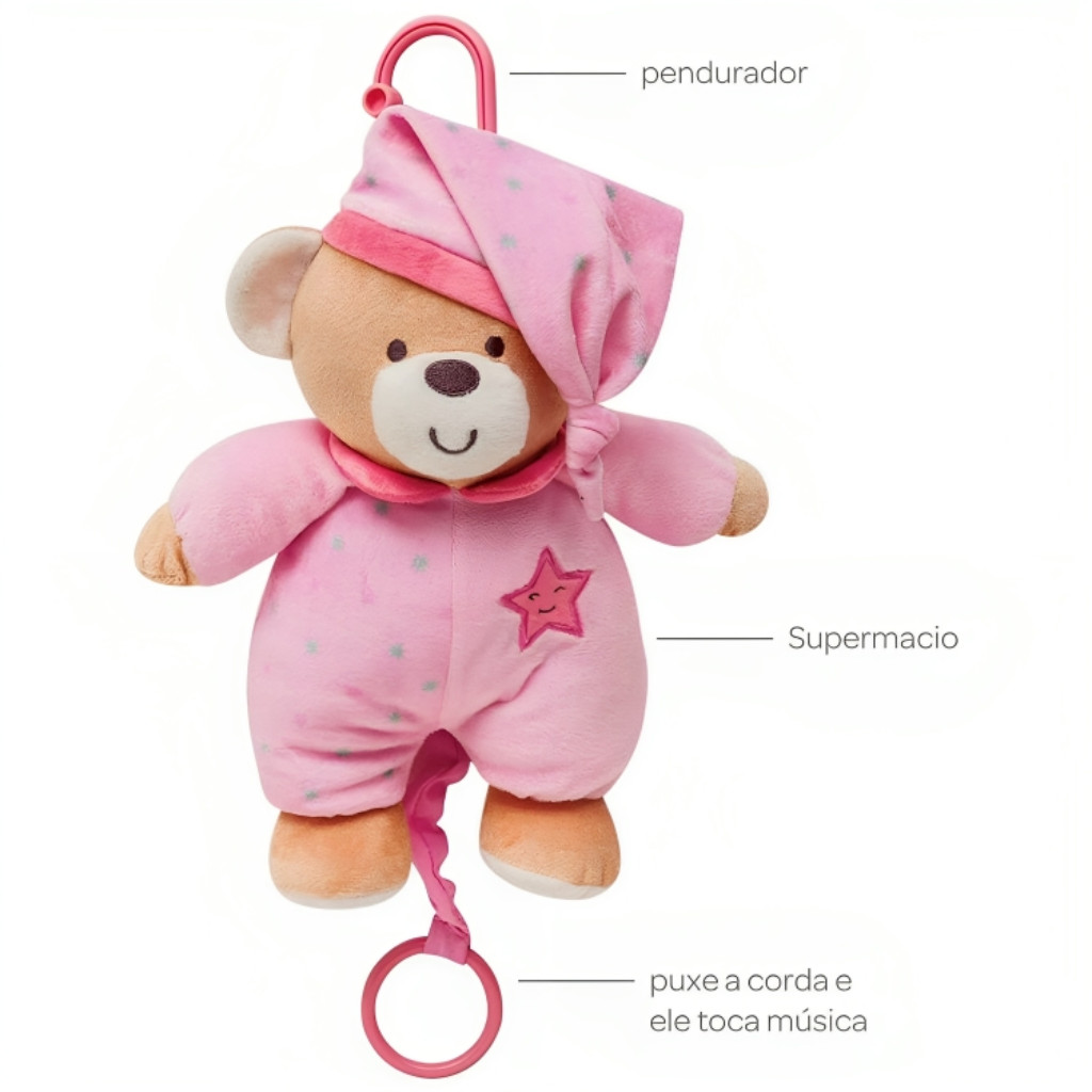 Ursinho Musical Estrelinha Rosa Bebê 7994 Buba