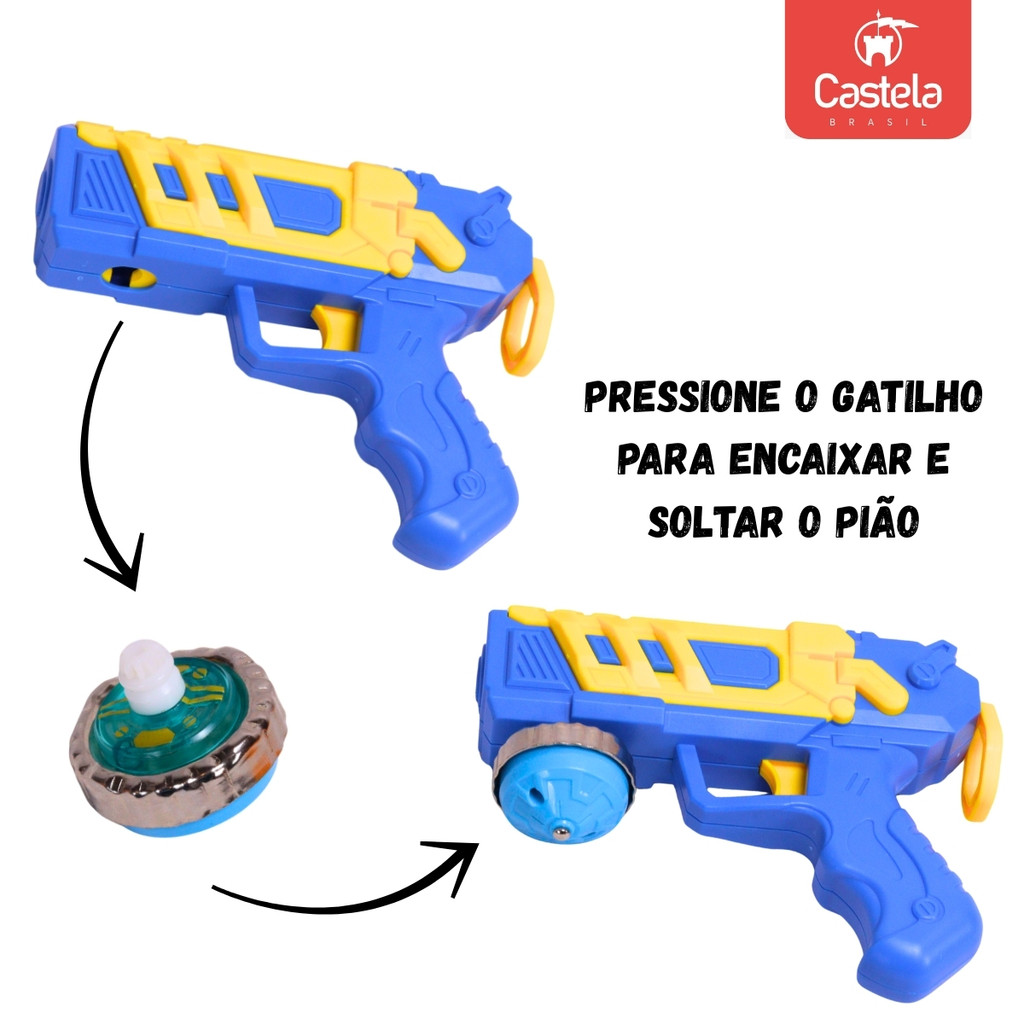Brinquedo Batalha Suprema 3 Piões 2 Lançadores Azul Vermelho - Castela