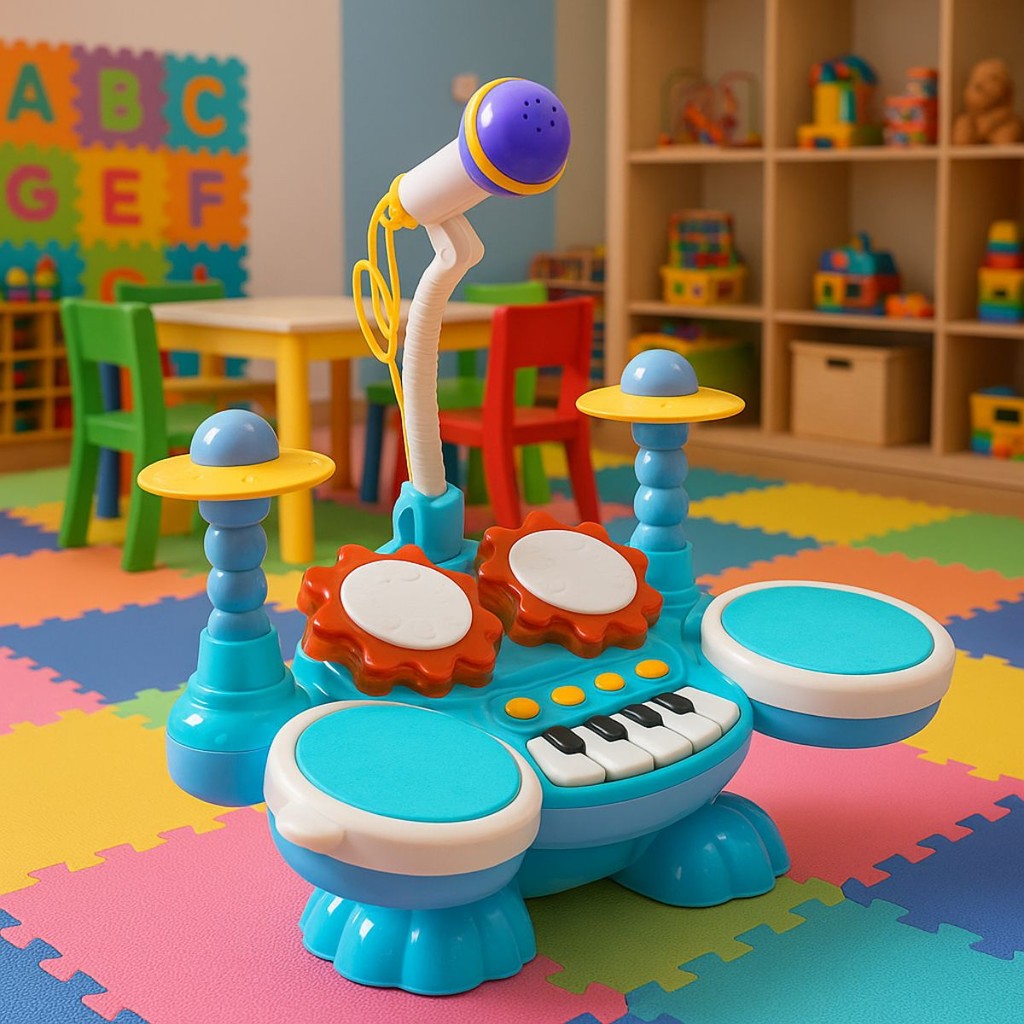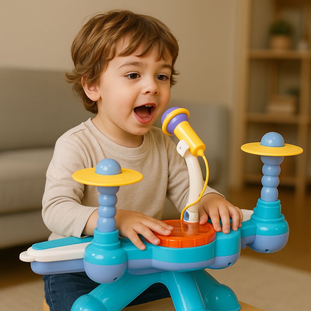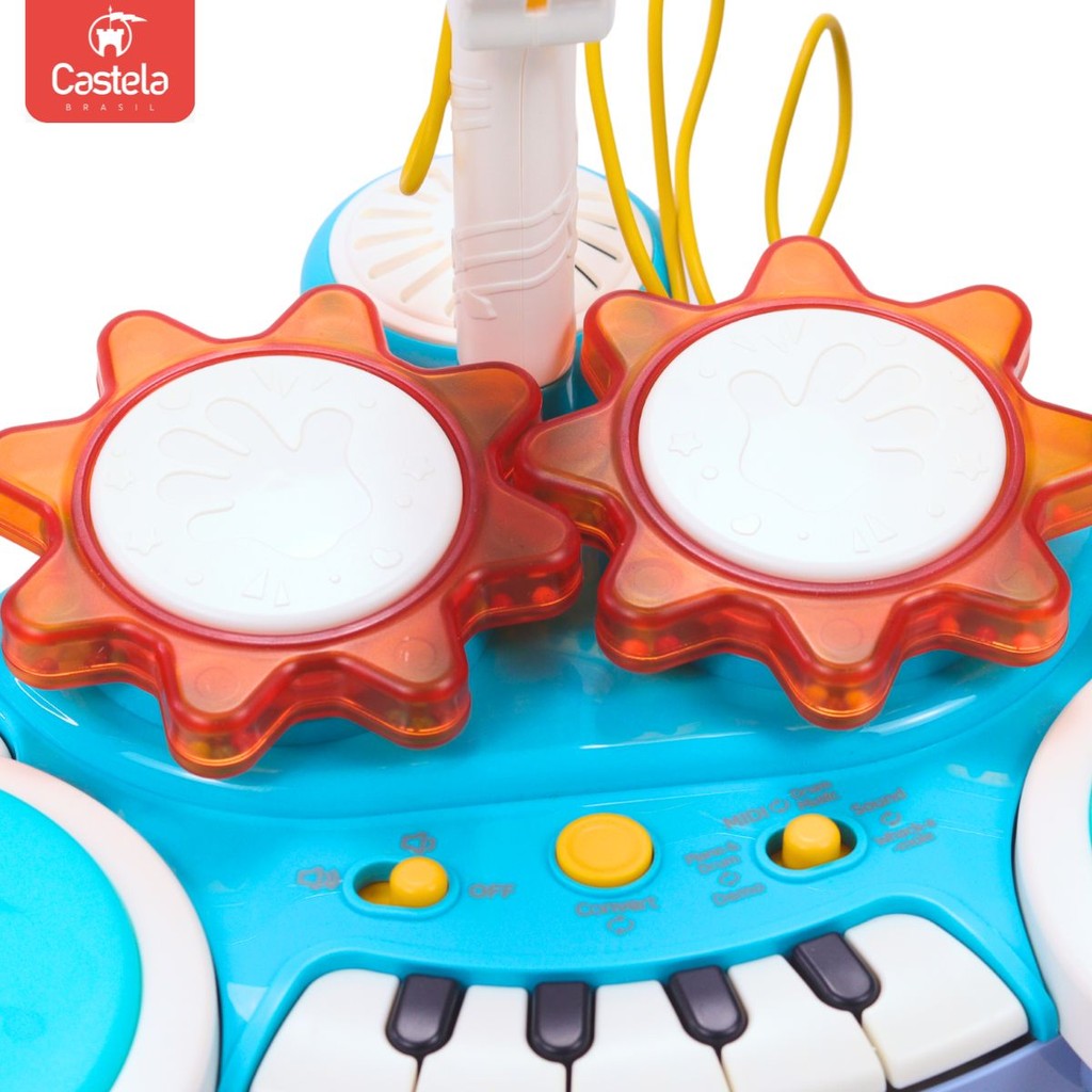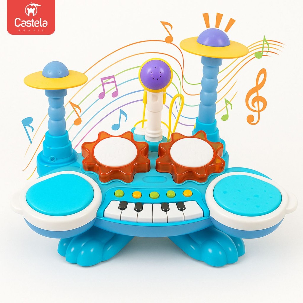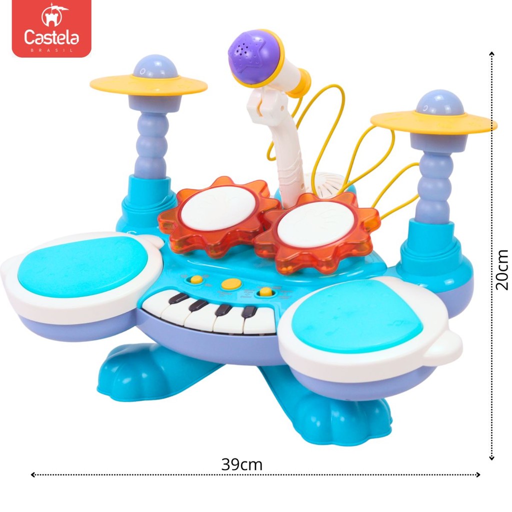 Brinquedo Bateria E Piano Com Som, Luz e Microfone - Castela