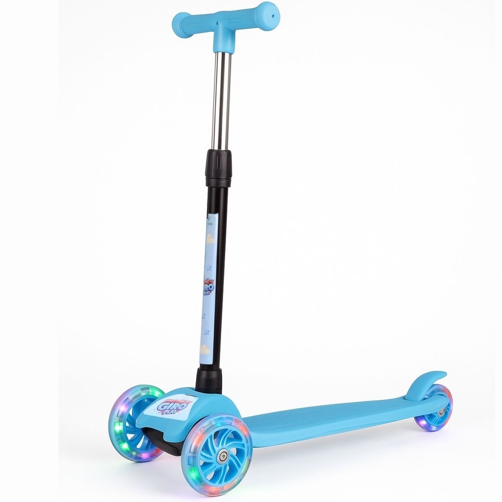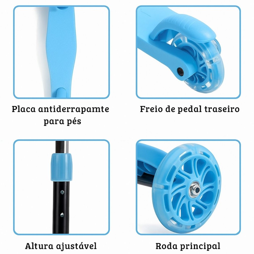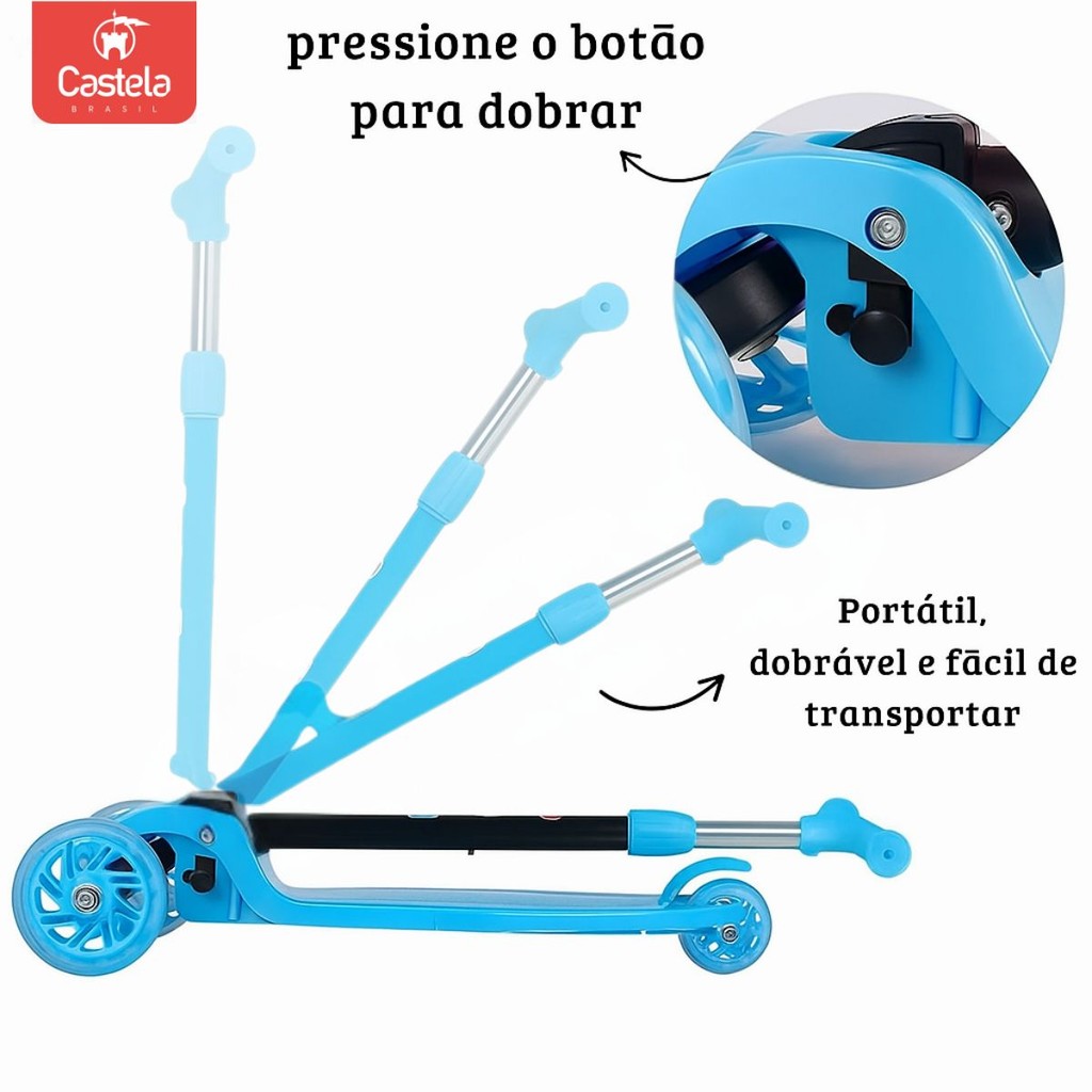 Patinete Dobrável Azul Infantil 3 Rodas Com Led - Castela