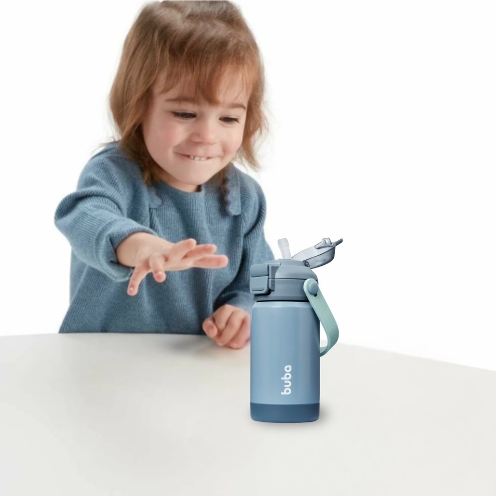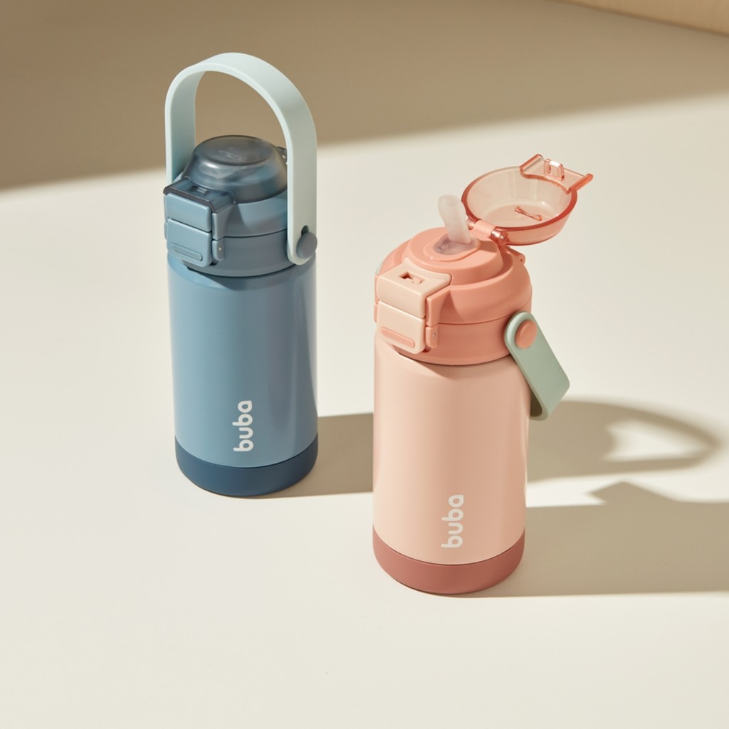 Garrafa Térmica Inox Parede Dupla Bico Ou Canudo 360ml Buba