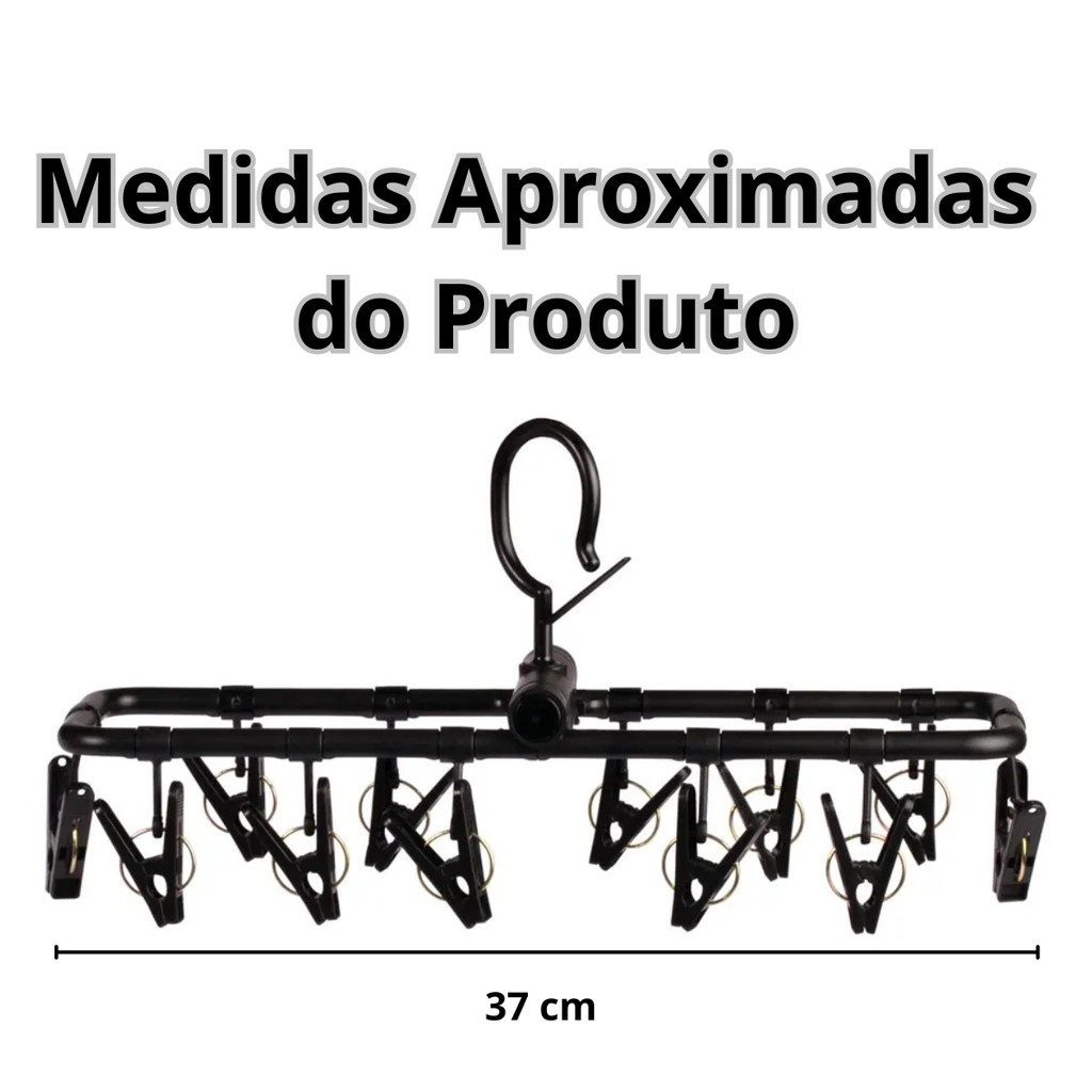 Mini Varal Dobrável Multiuso 12 Prendedores Preto - 6231 Mor