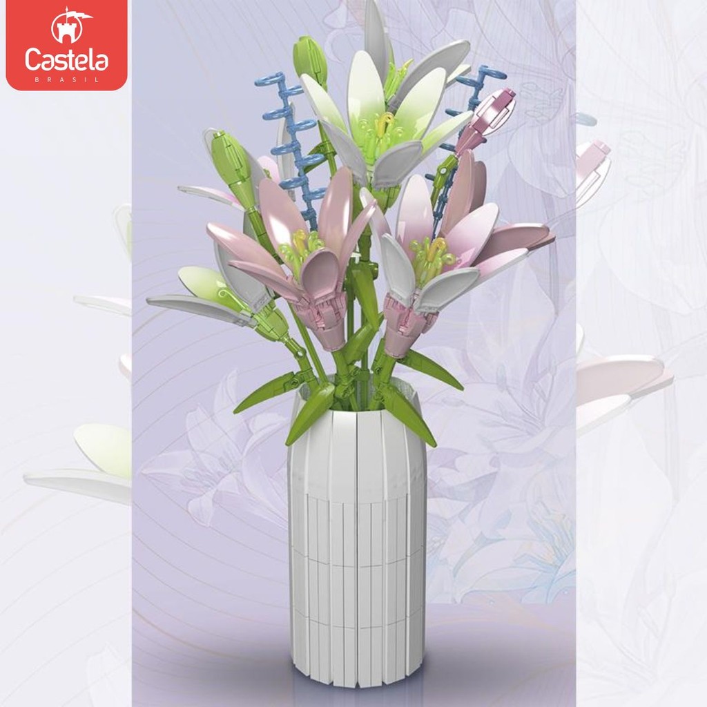 Blocos De Montar Vaso De Flores Lírio 1006 Peças - Castela