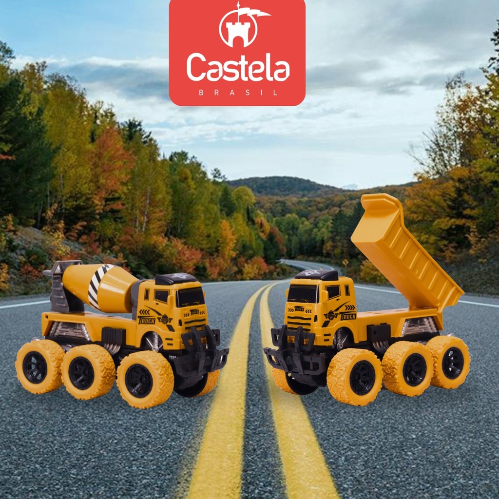 Pack 2 Carrinhos Infantil Caminhão Obras Betoneira e Caçamba CBS1223 - Castela