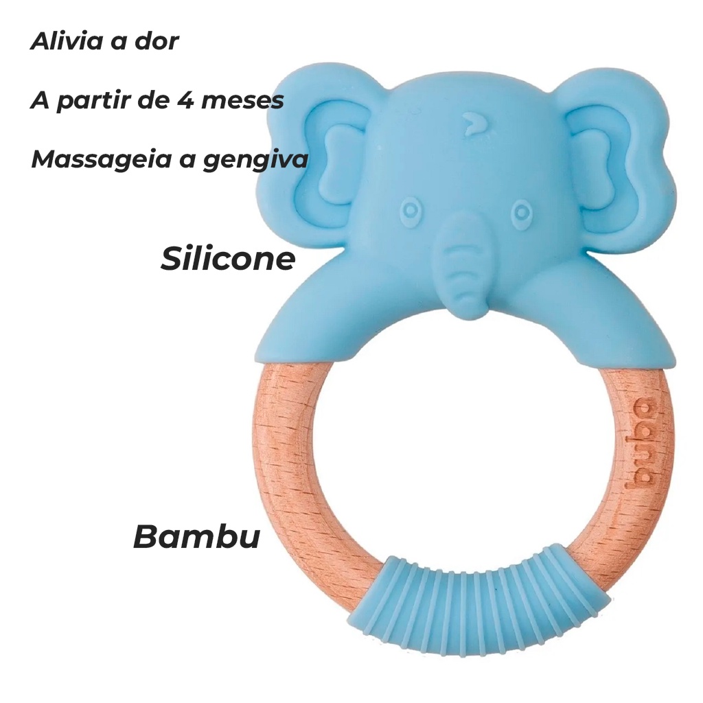 Mordedor Elefantinho Em Silicone Azul Livre BPA 15651 - Buba