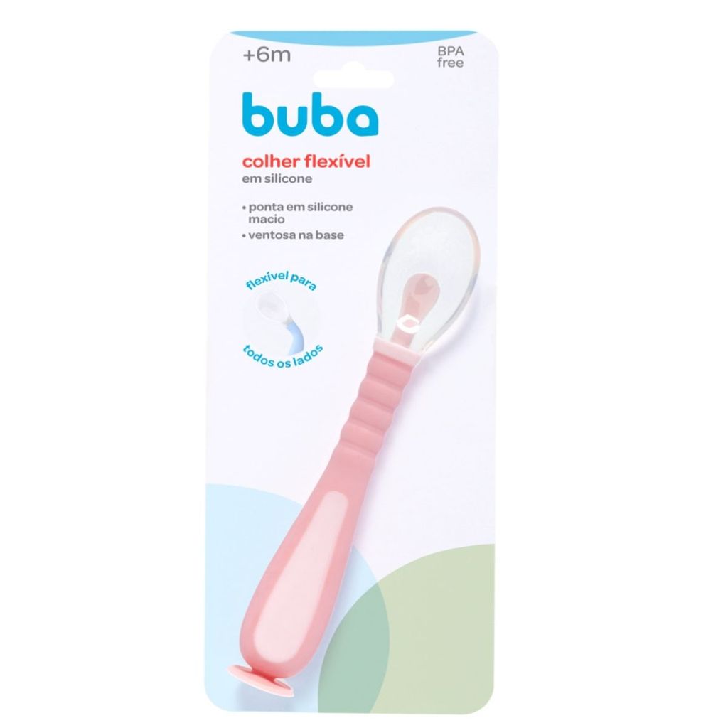 Colher Infantil Em Silicone Flexível Com Ventosa Rosa 18078 - Buba