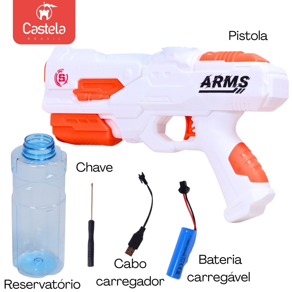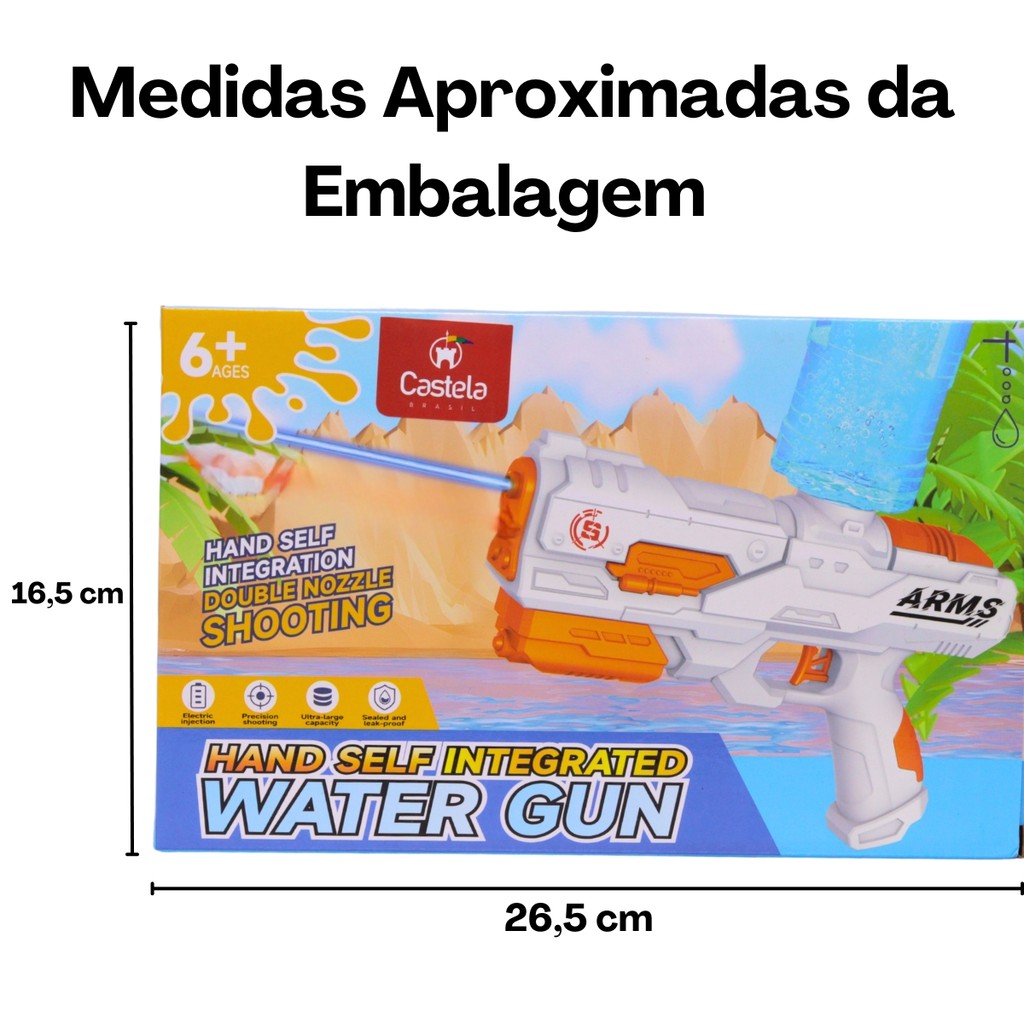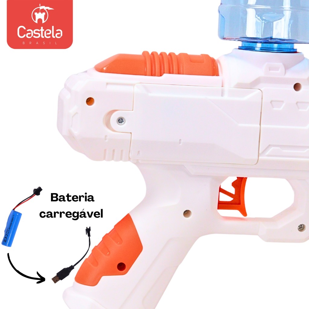 Brinquedo de Água Pistola Recarregável c/ Reservatório Cor Laranja - Castela