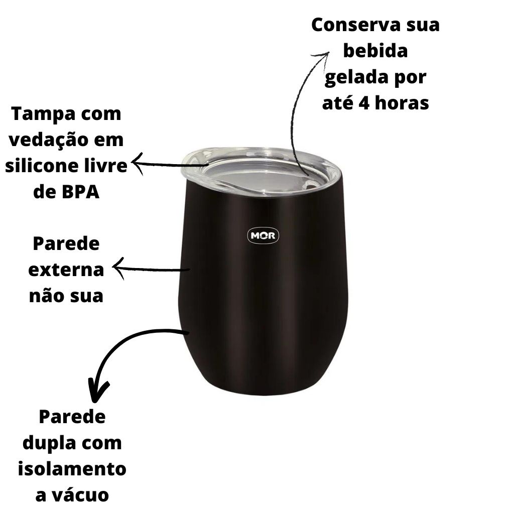 Copo Térmico Preto De 360ml 008041 - Mor