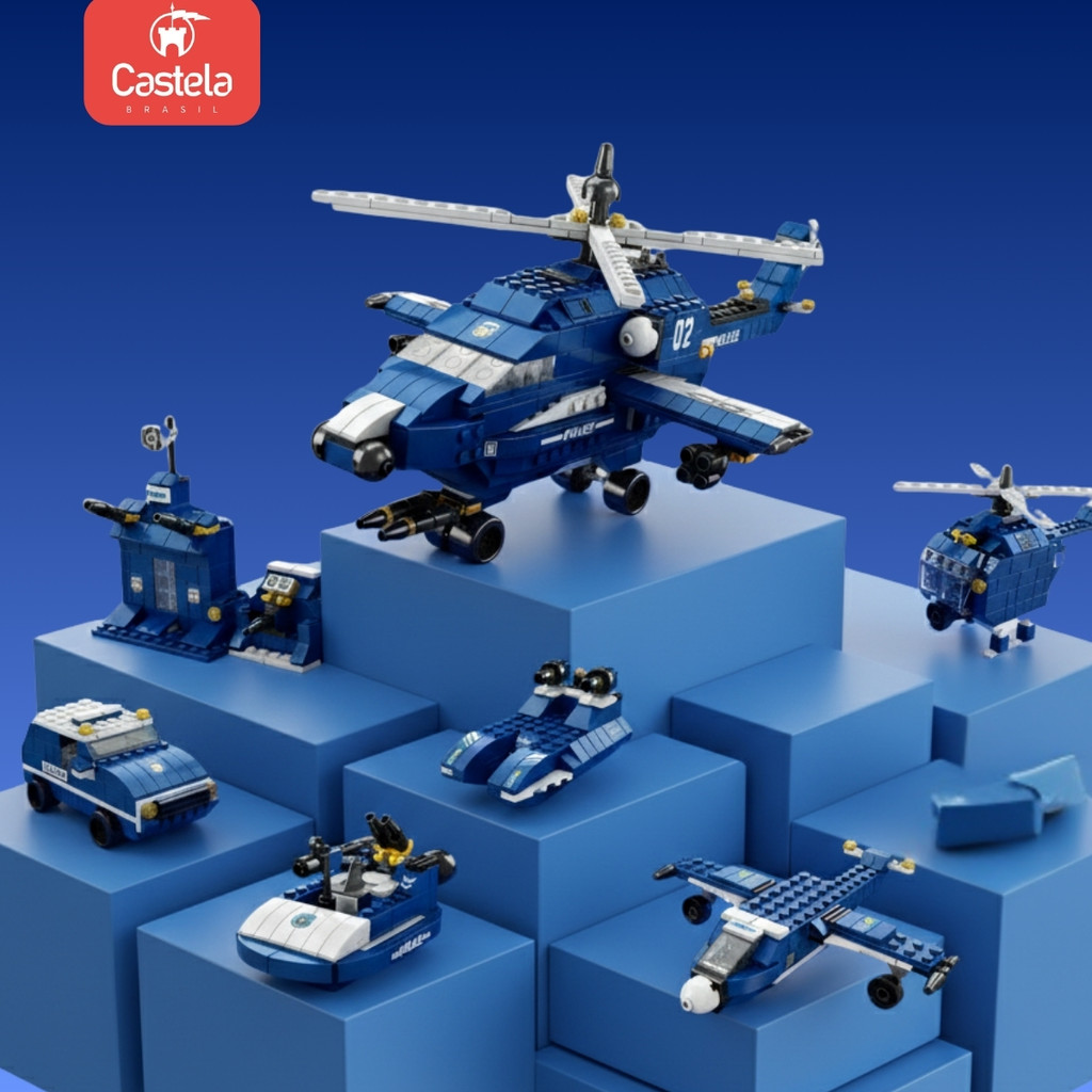 Blocos de Montar Coleção Helicóptero Azul 1000 Peças 6 em 1 - Castela