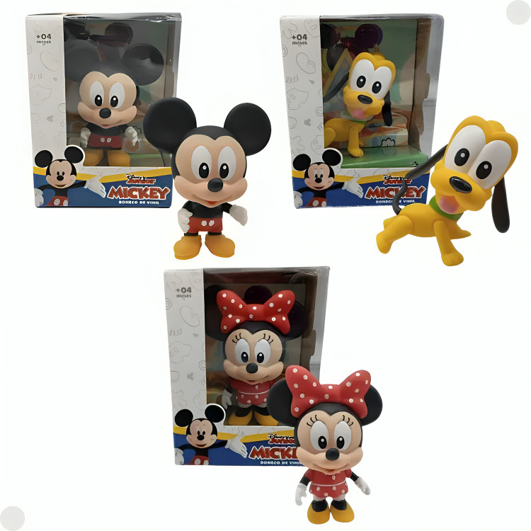 Kit com 3 Bonecos De 12cm Mickey Minnie Pluto 3293 Líder