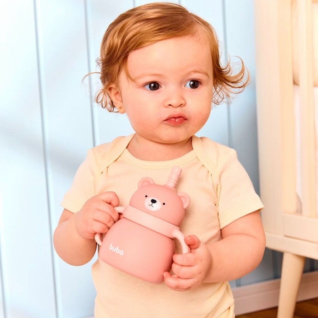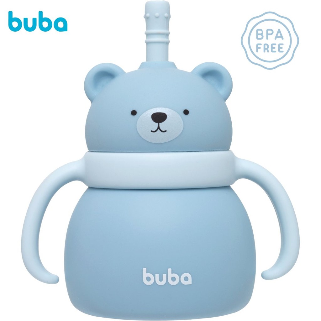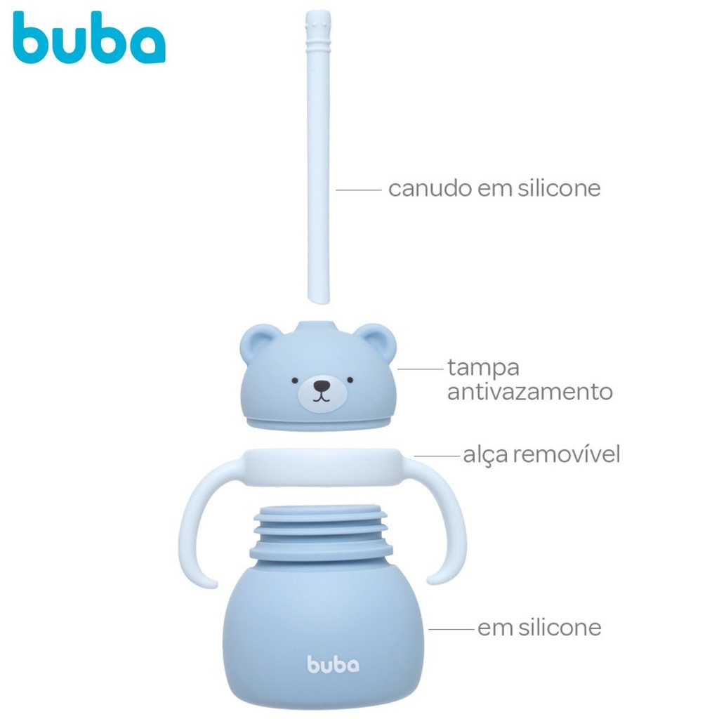 Copo em Silicone Com Canudo Ursinho Azul 19689 - Buba