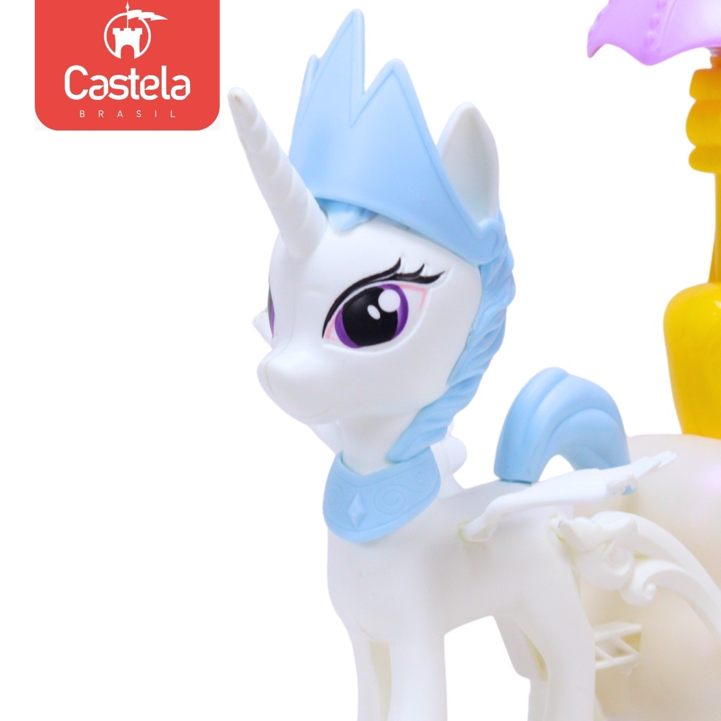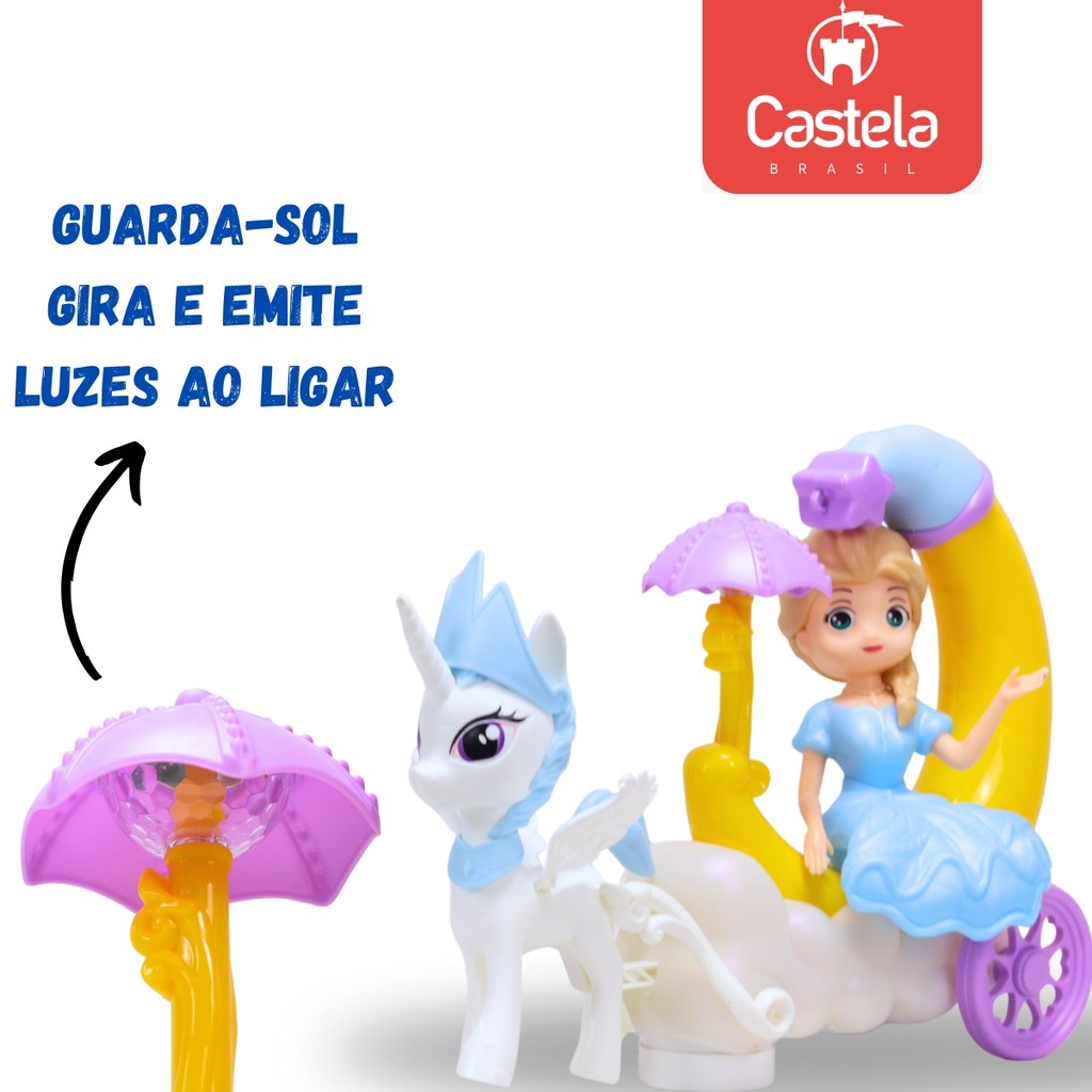 Brinquedo Carruagem de Unicórnio Princesa Azul Luz e Som Castela
