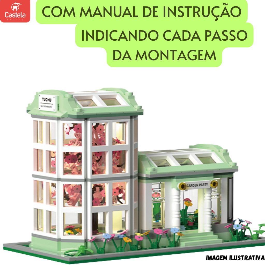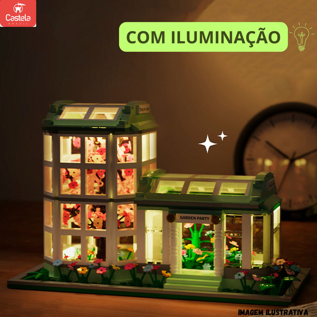 Blocos de Montar Jardim Botânico Flores Garden 827 Peças Com Luz - Castela