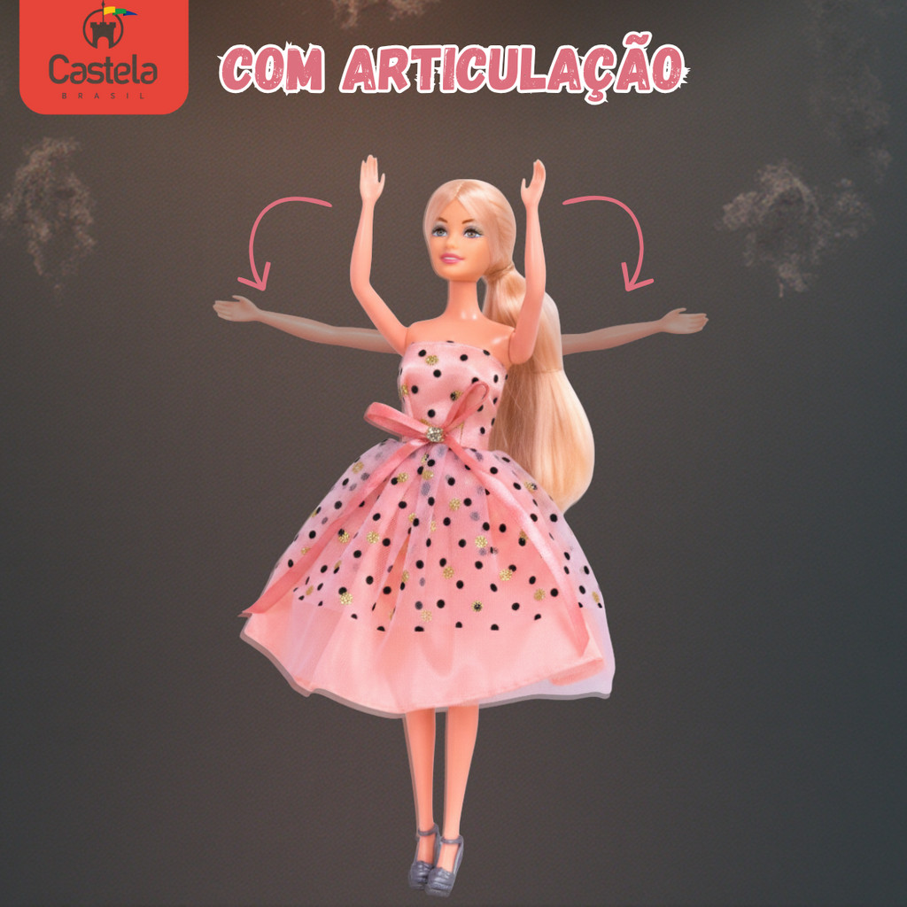 Boneca Axinni Coleção Desfile De Moda Vestido Rosa - Castela
