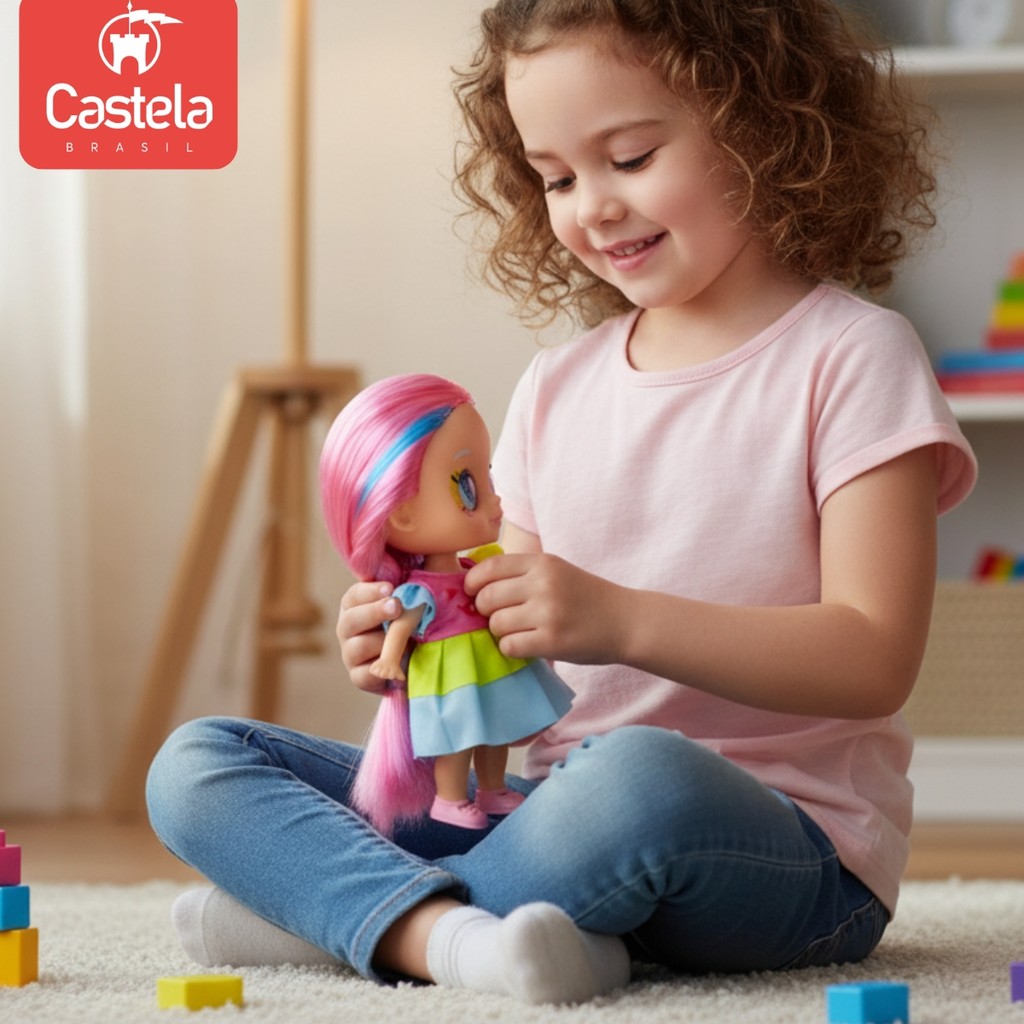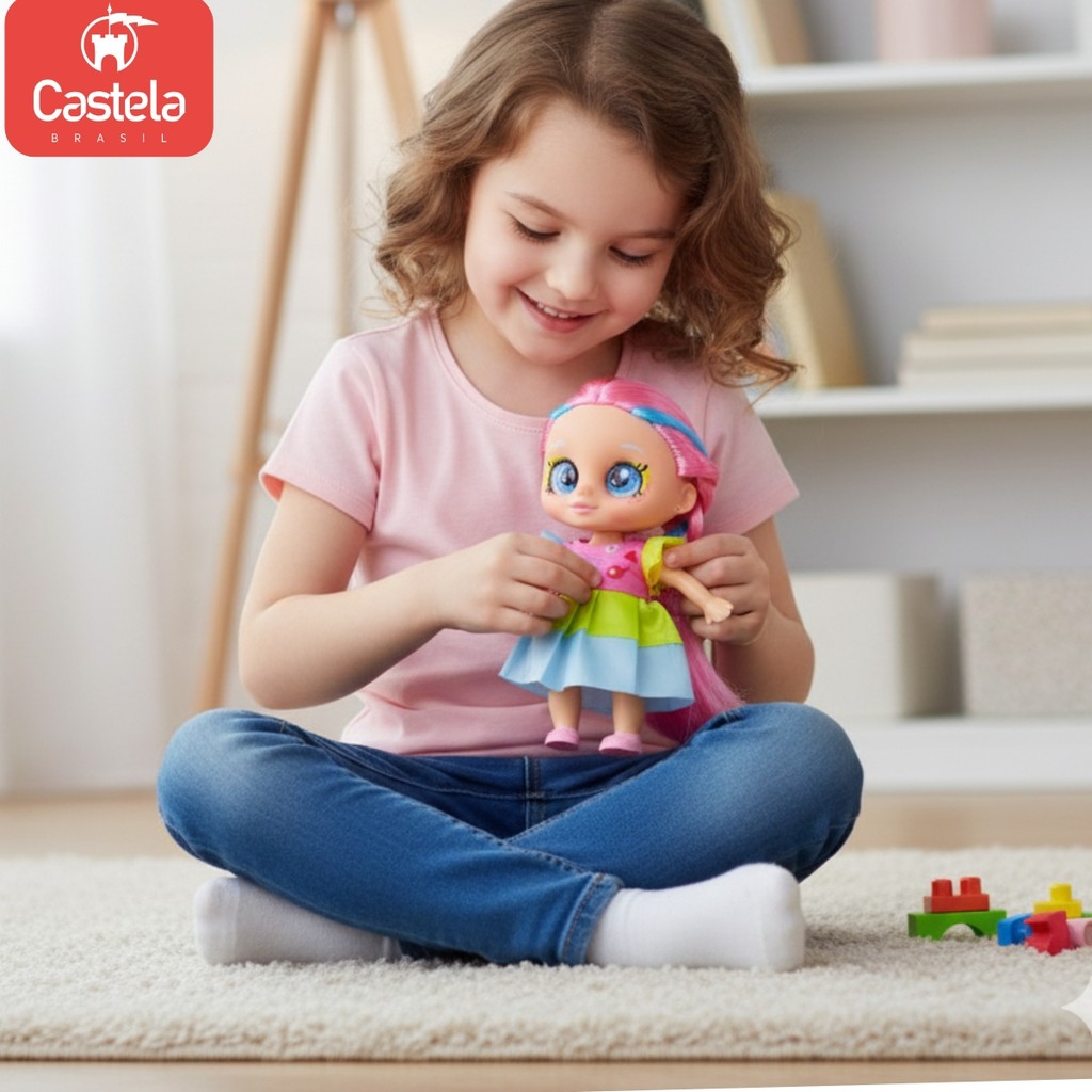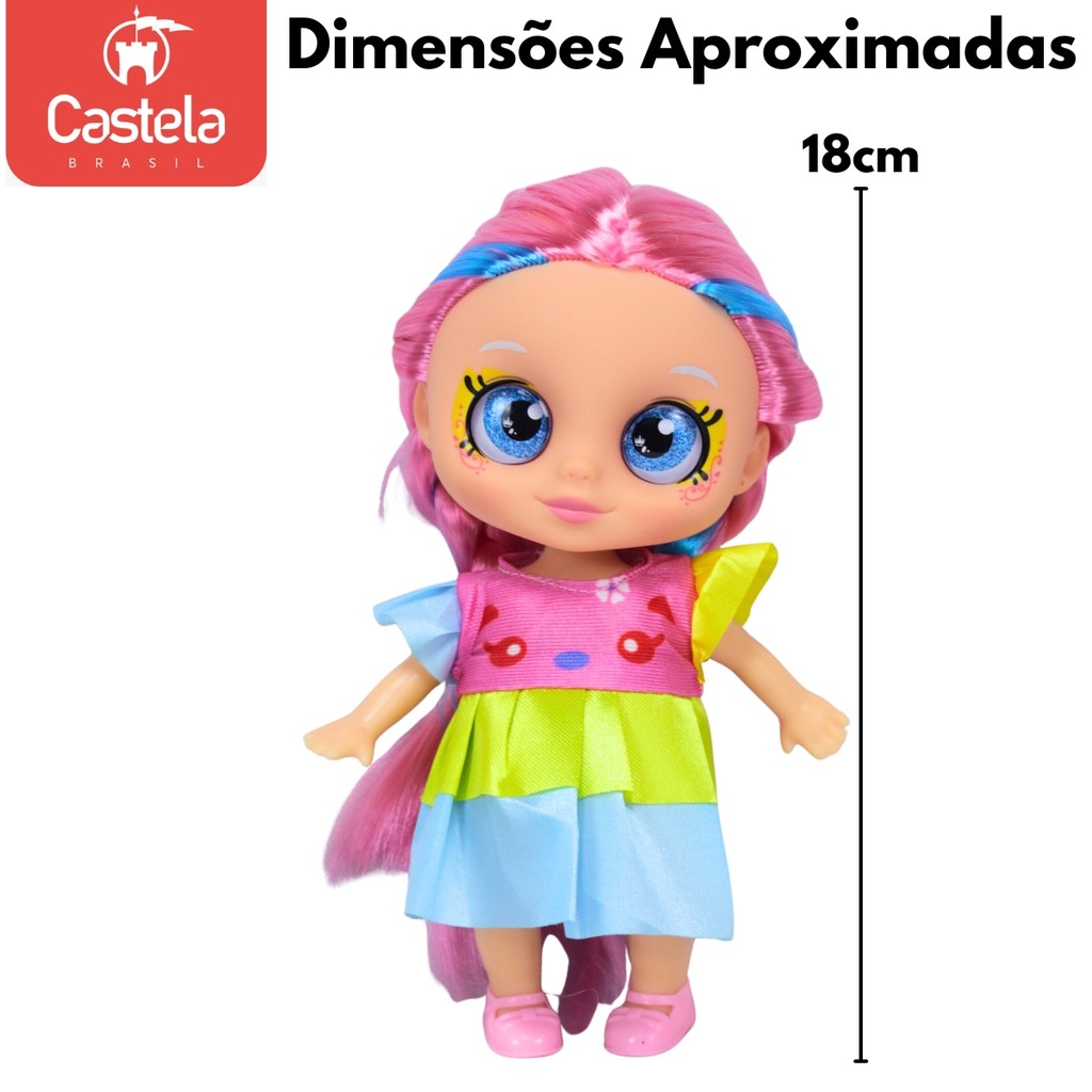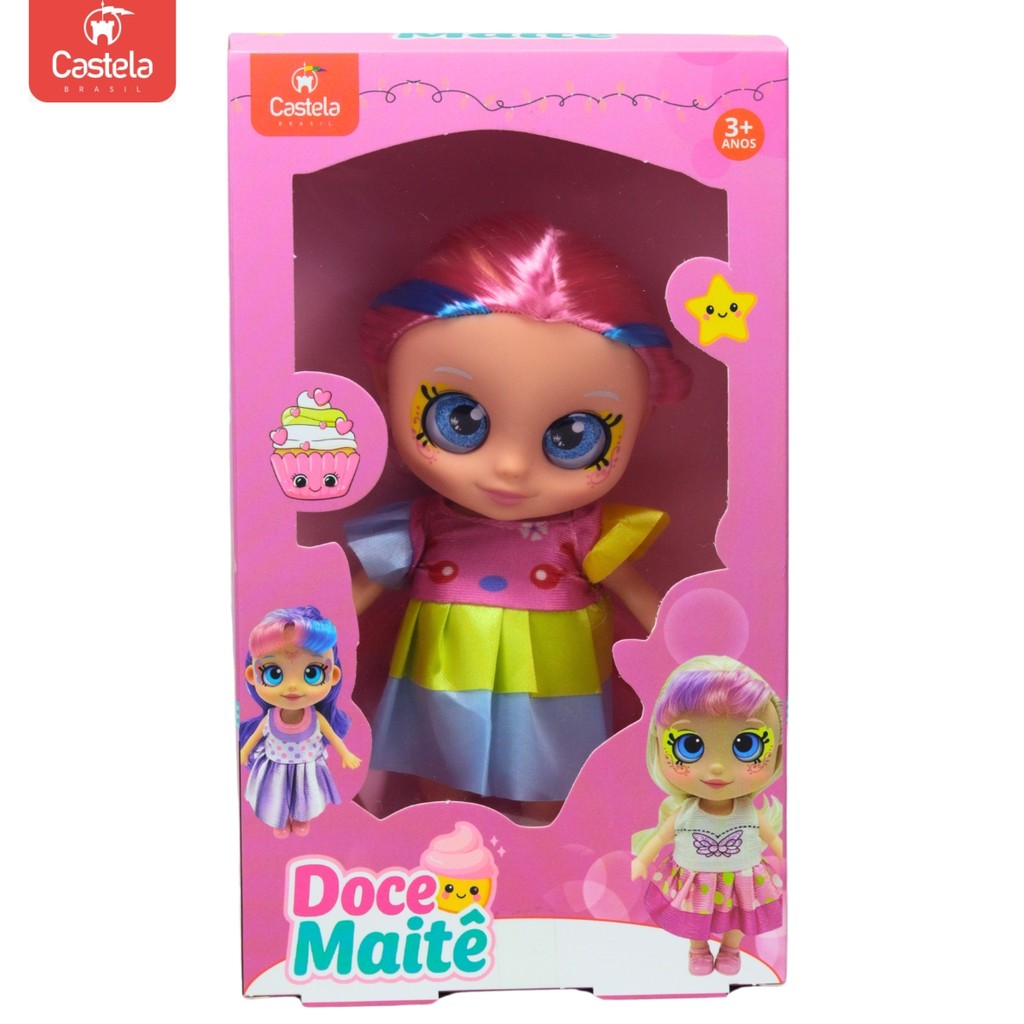 Boneca Articulada Doce Maitê Vestido Colorido 18 cm Castela