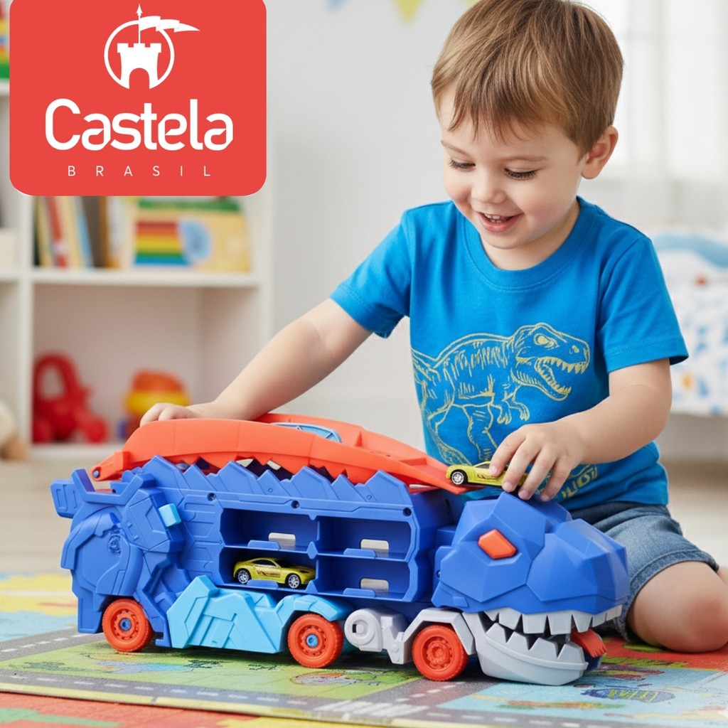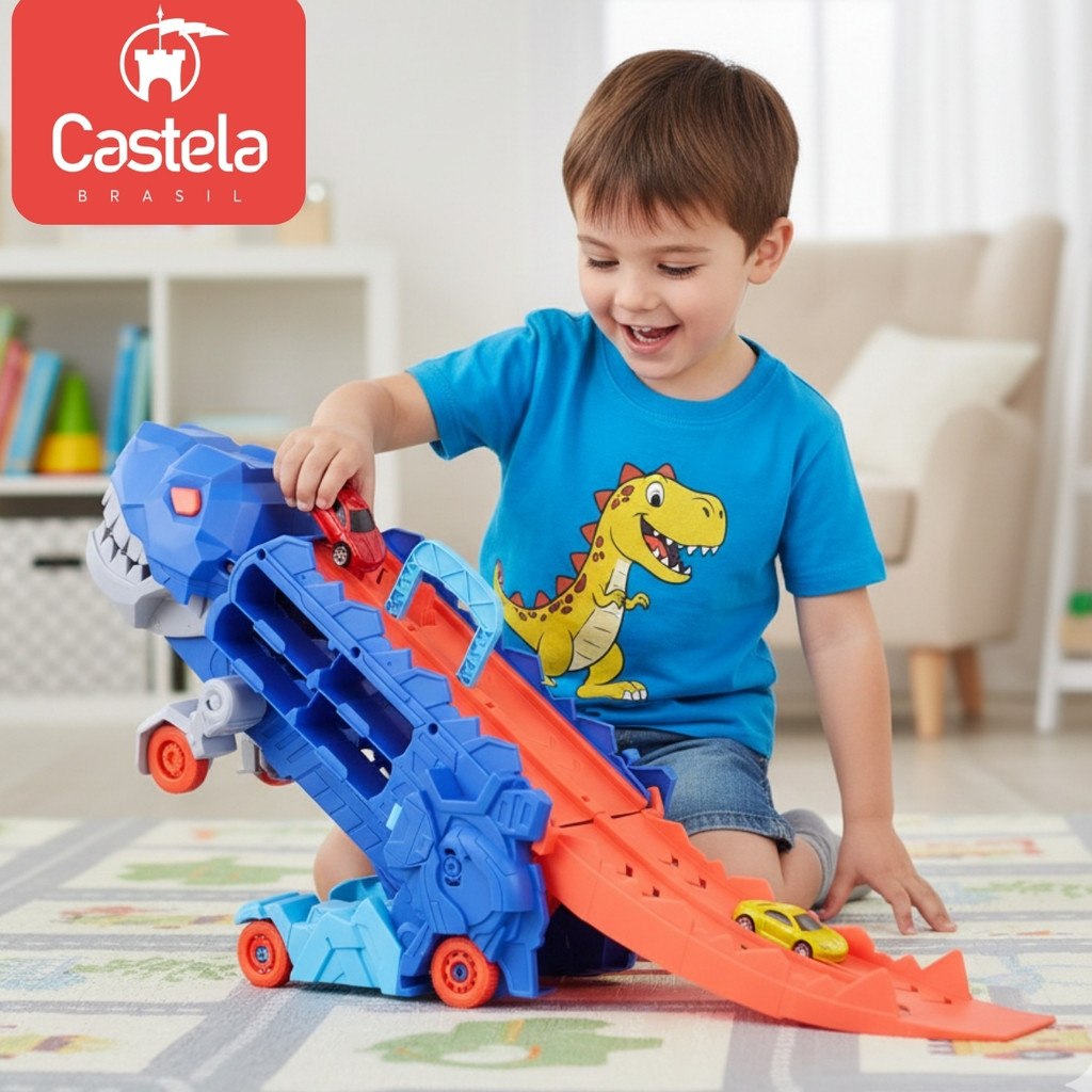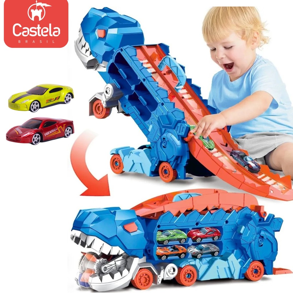 Brinquedo Caminhão Pista Dinossauro 2em1 Devorador de Carrinhos - Castela