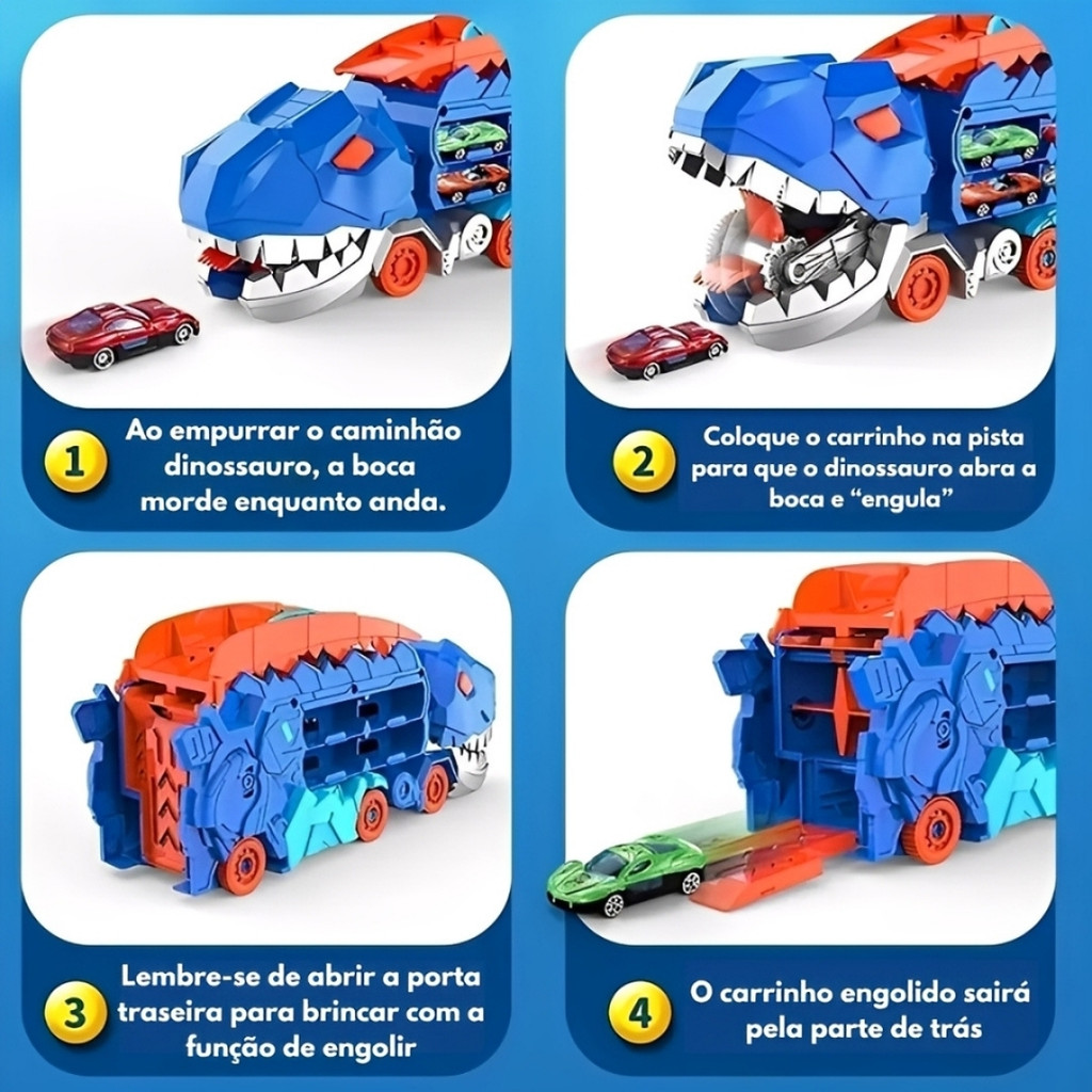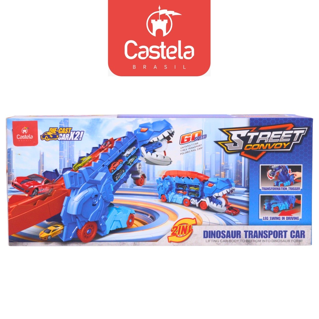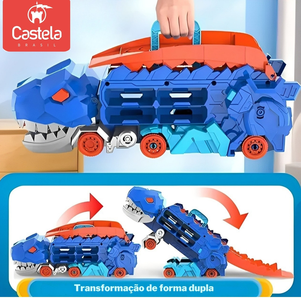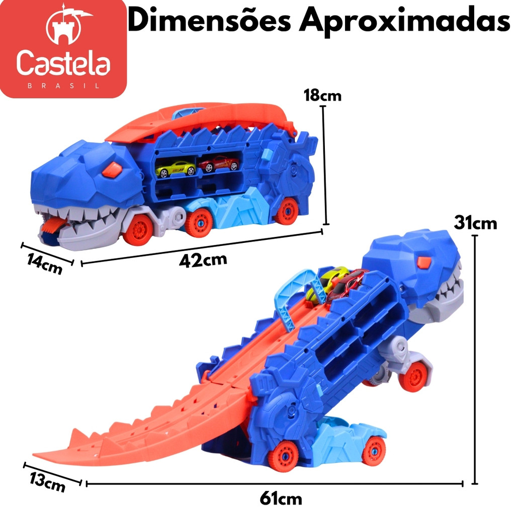 Brinquedo Caminhão Pista Dinossauro 2em1 Devorador de Carrinhos - Castela