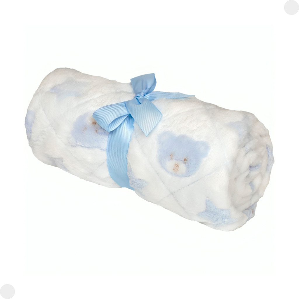 Mantinha Infantil Ursinho Azul Bege Rosa 18071 - Buba