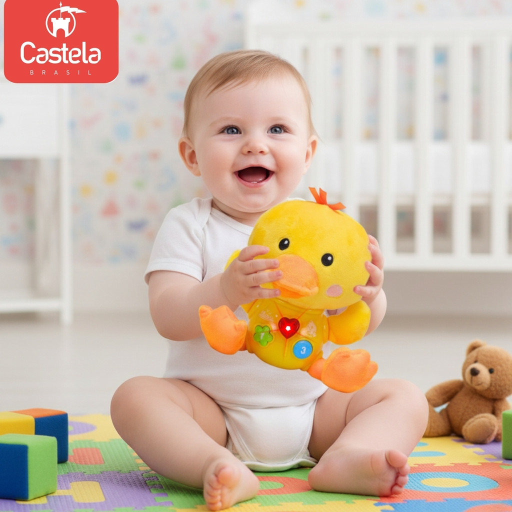 Patinho de Pelúcia Musical Infantil C/ Som e Luz - Castela Brasil