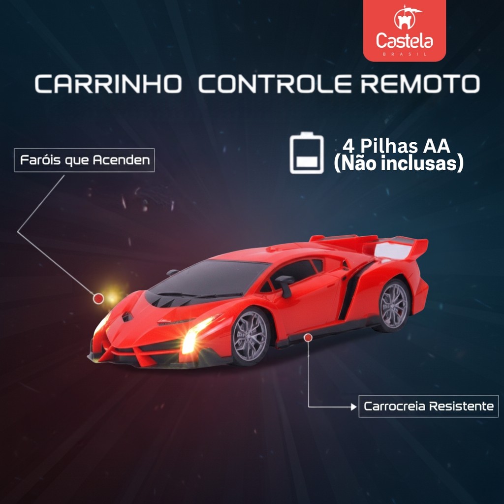 Carro de Controle Remoto Super Car Com Luz Volante Infantil - Castela