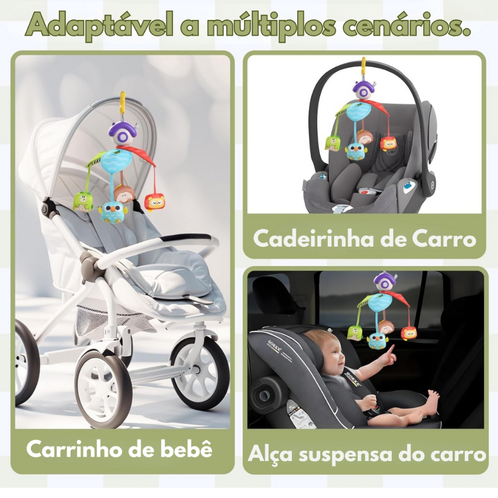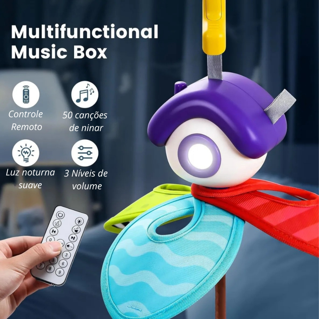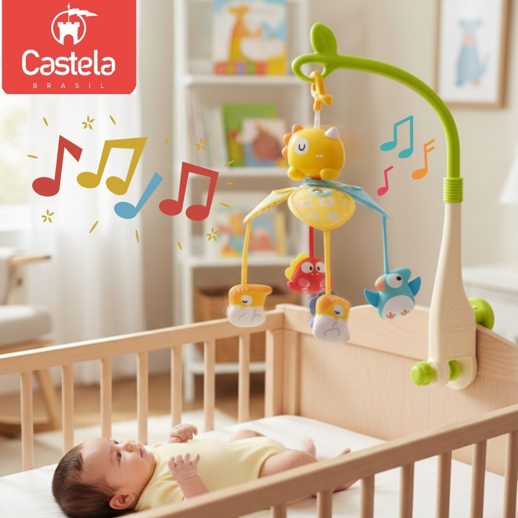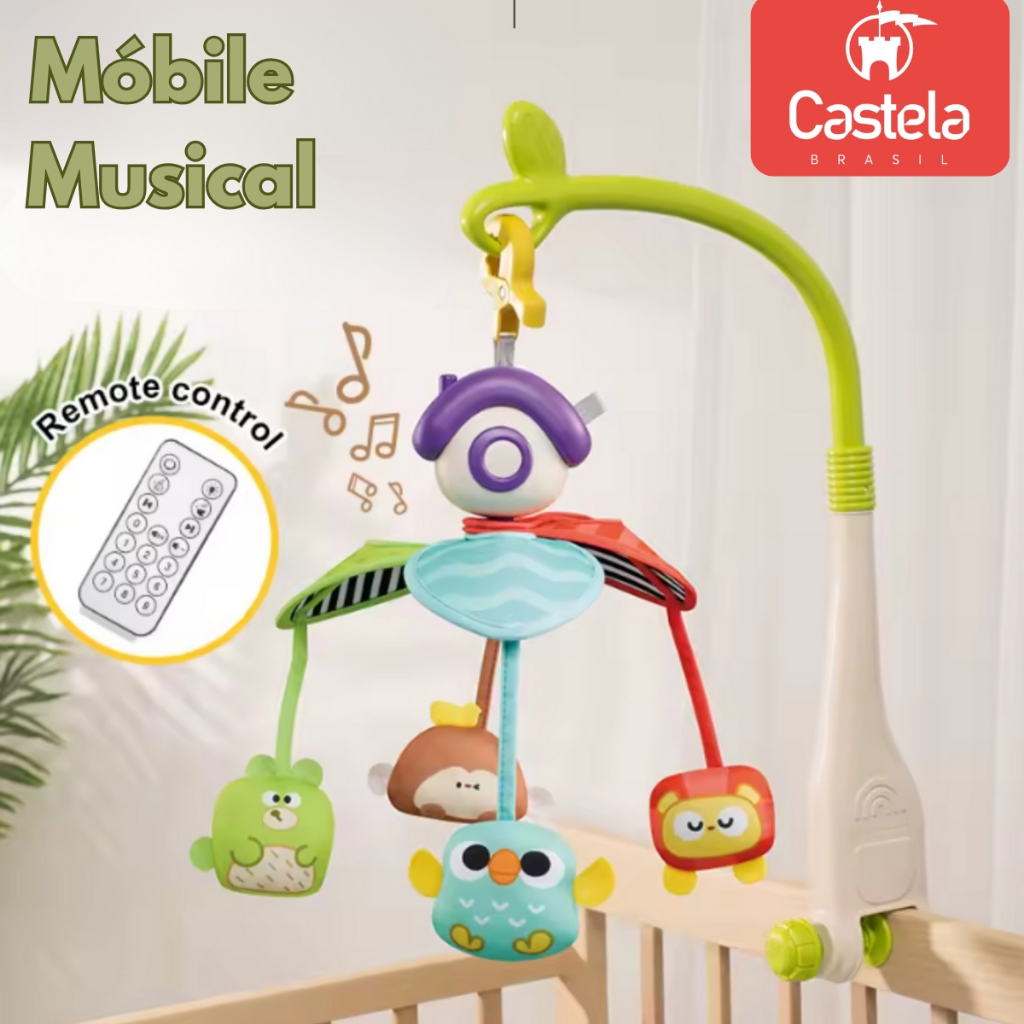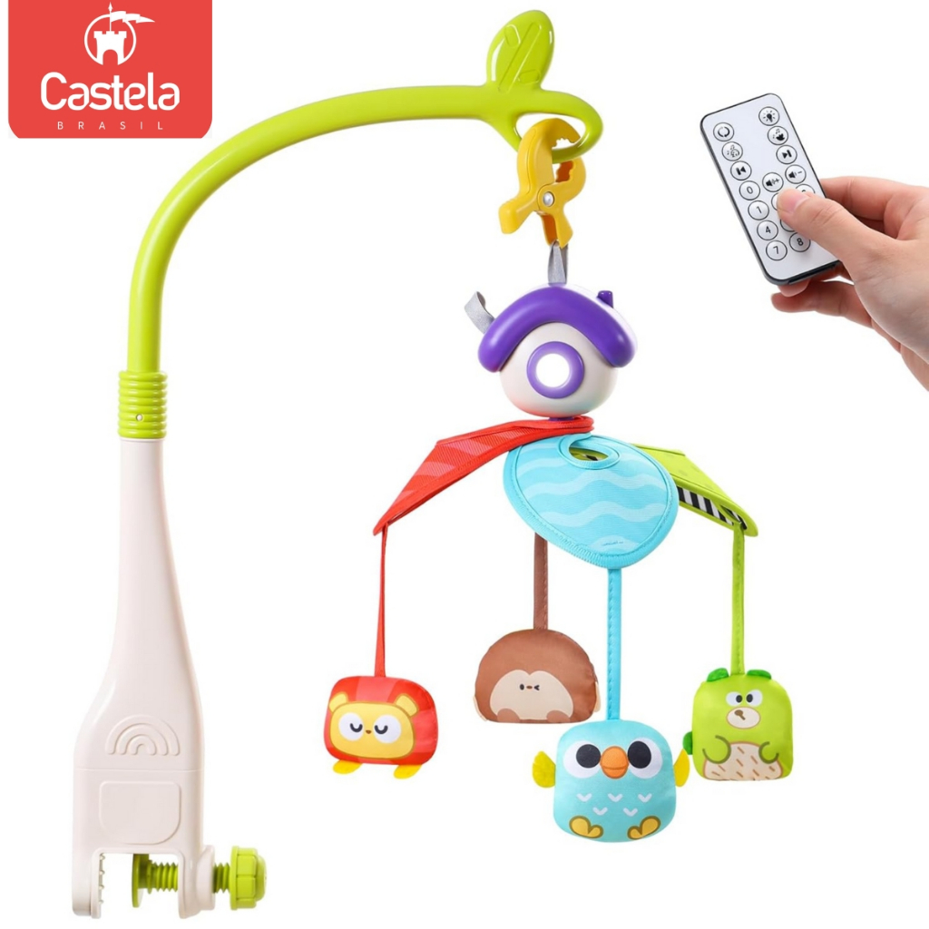 Brinquedo Mobile Musical Infantil Bichinhos para Berço C/ Som e Luz - Castela