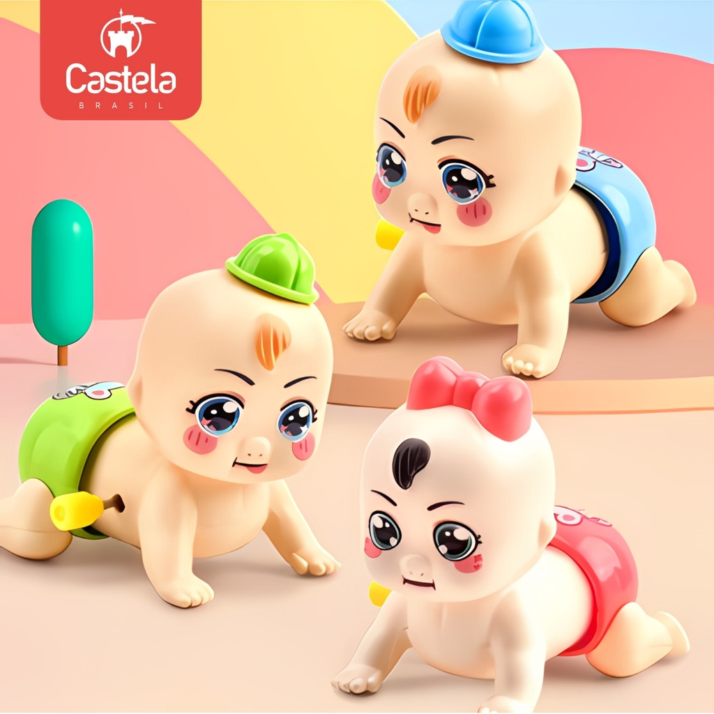 Kit 3 Unidades Brinquedo Boneca Bebê Baby Engatinha Infantil Castela
