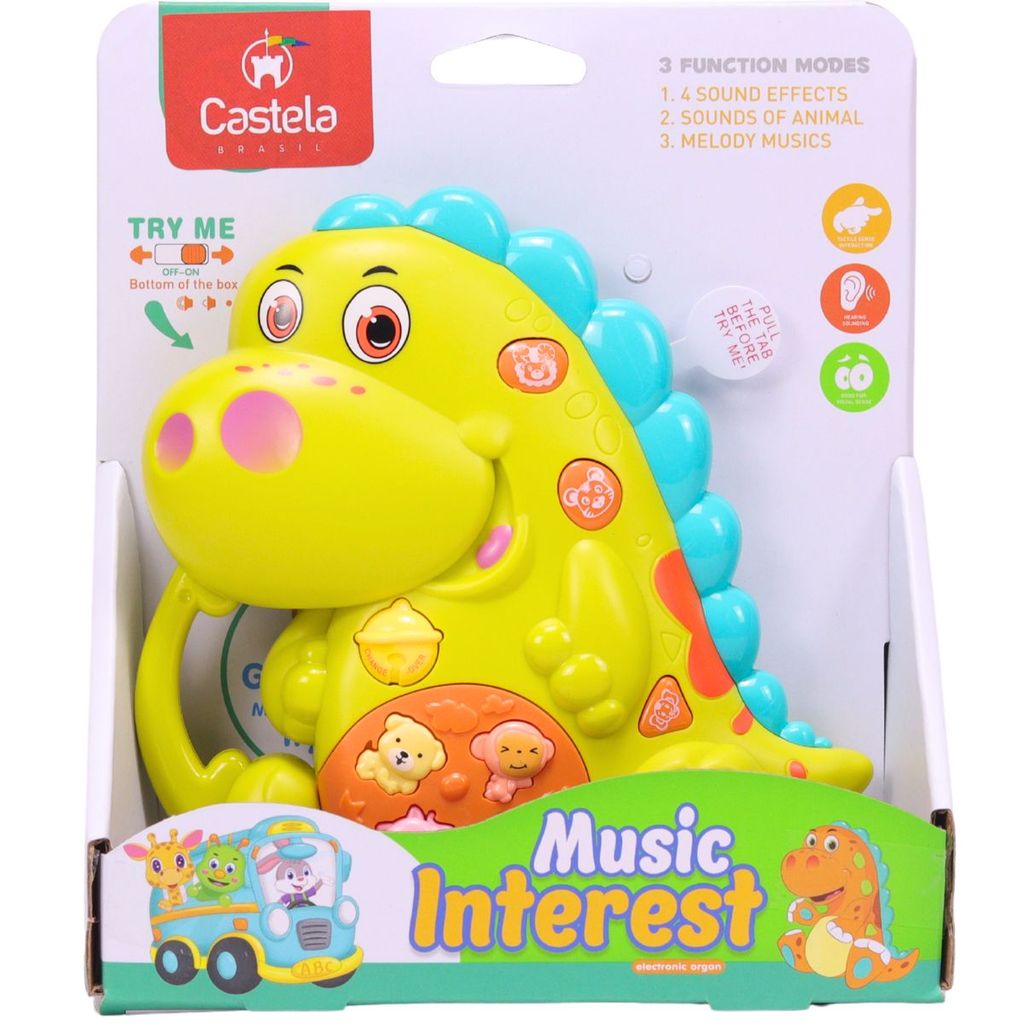 Brinquedo Teclado Infantil Dinossauro Musical Verde C/ Sons e luz - Castela