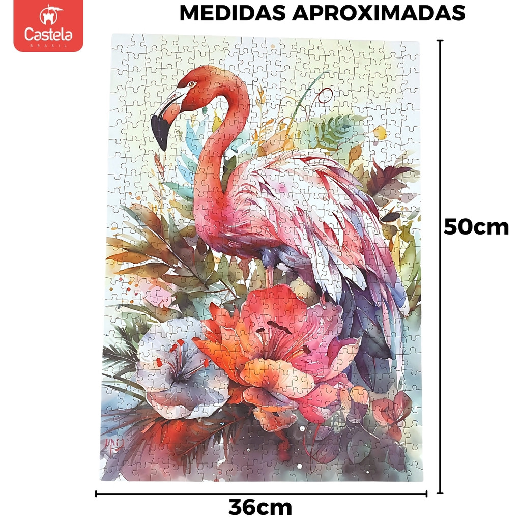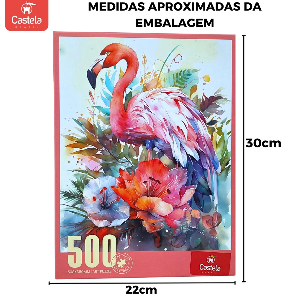 Quebra Cabeça 500 Peças Flamingo e Flores Decorativo Castela