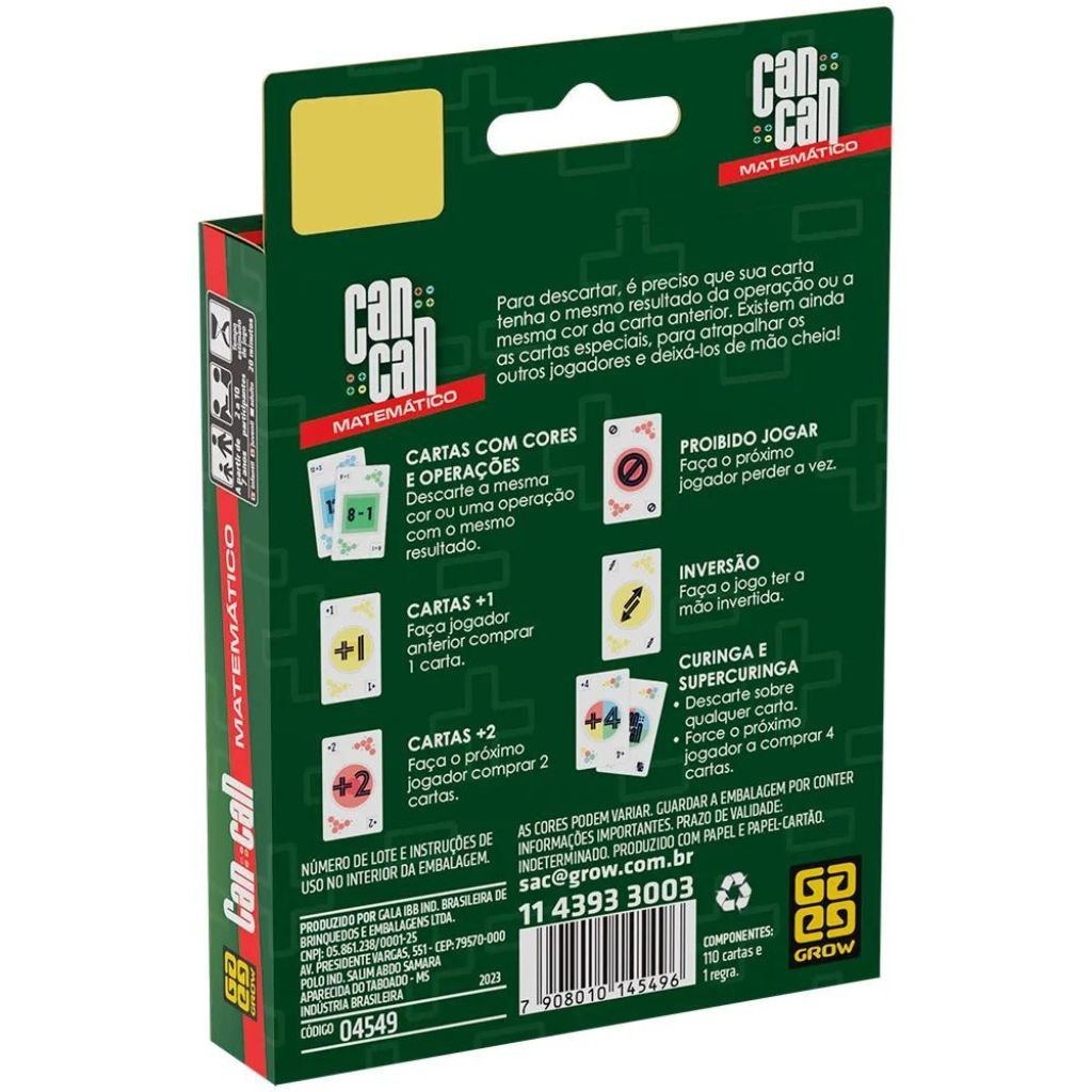 Jogo Cartas Educativo Can Can Matemático 110 Cartas 04549 - Grow