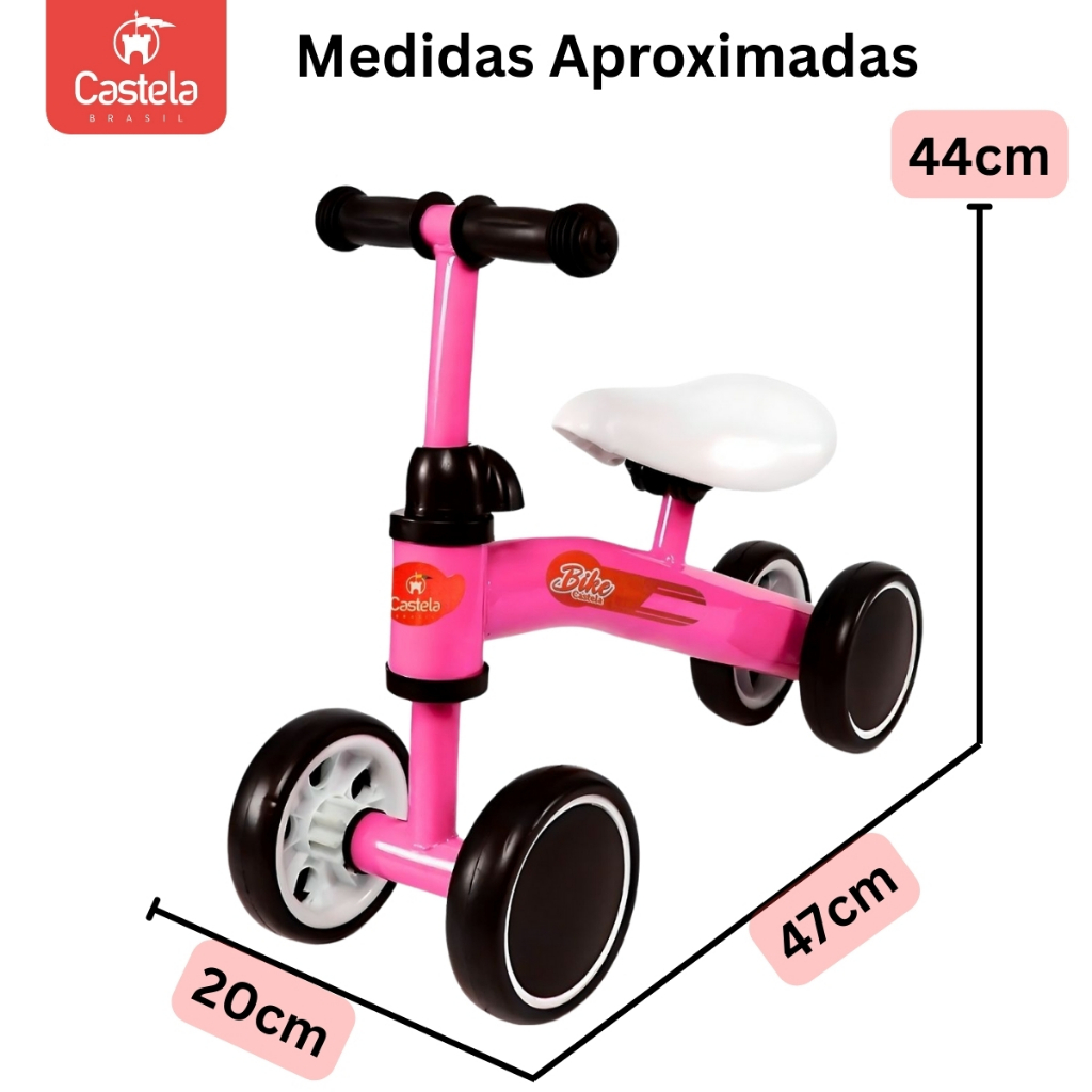 Bicicleta De Equilíbrio Infantil Até 20Kg Rosa - Castela