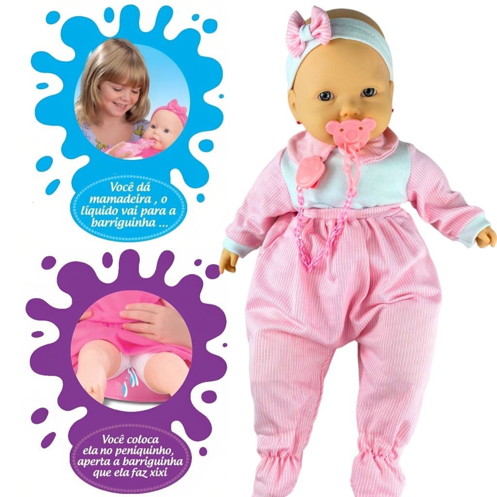 Boneca Branca Bebê Mania Xixi Com Acessórios 5331 Roma Brinquedos