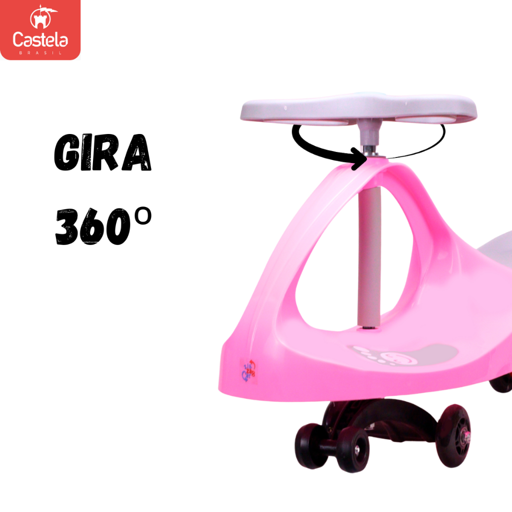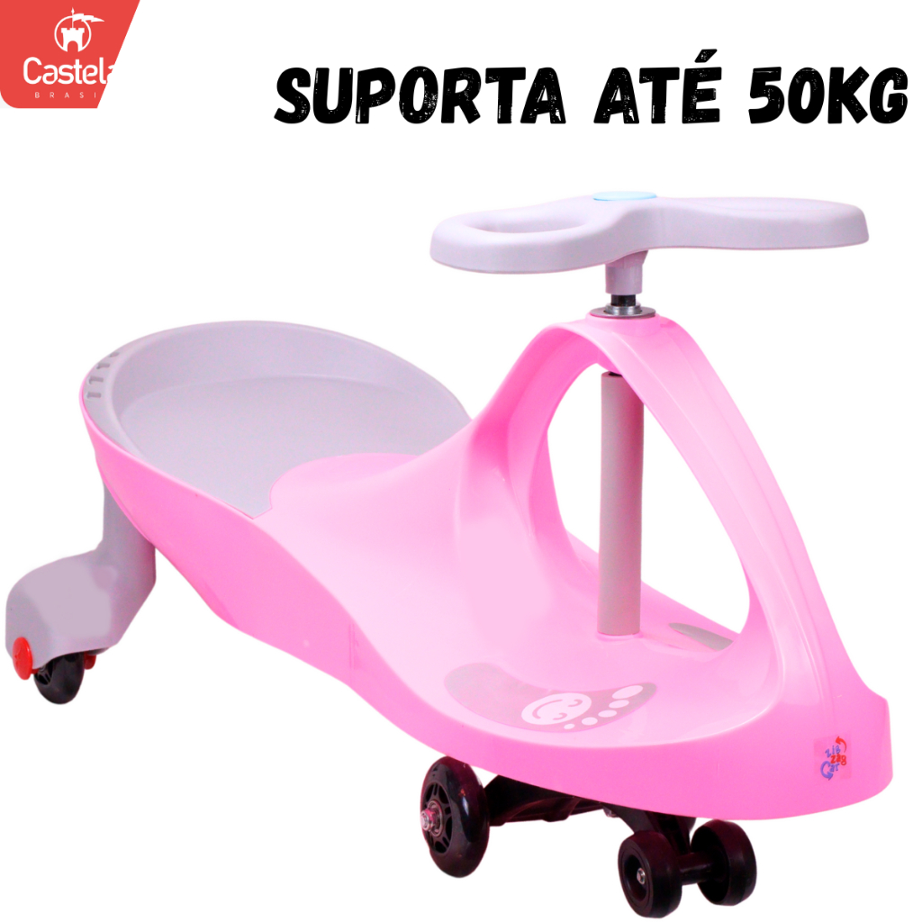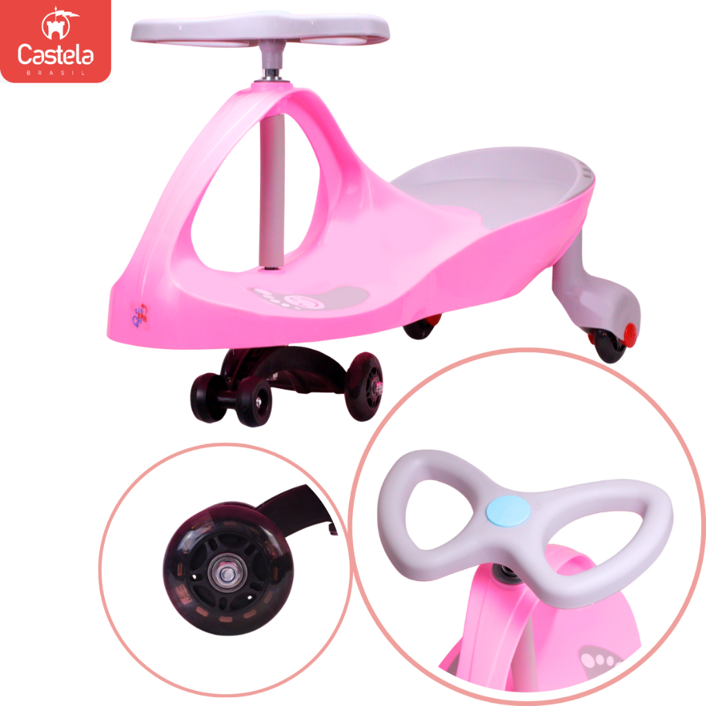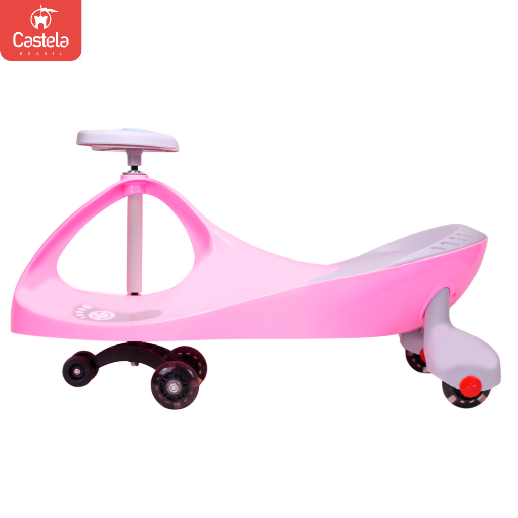 Carrinho Rolimã Zig Zag Car Rosa e Cinza 360 Roda Led Infantil - Castela
