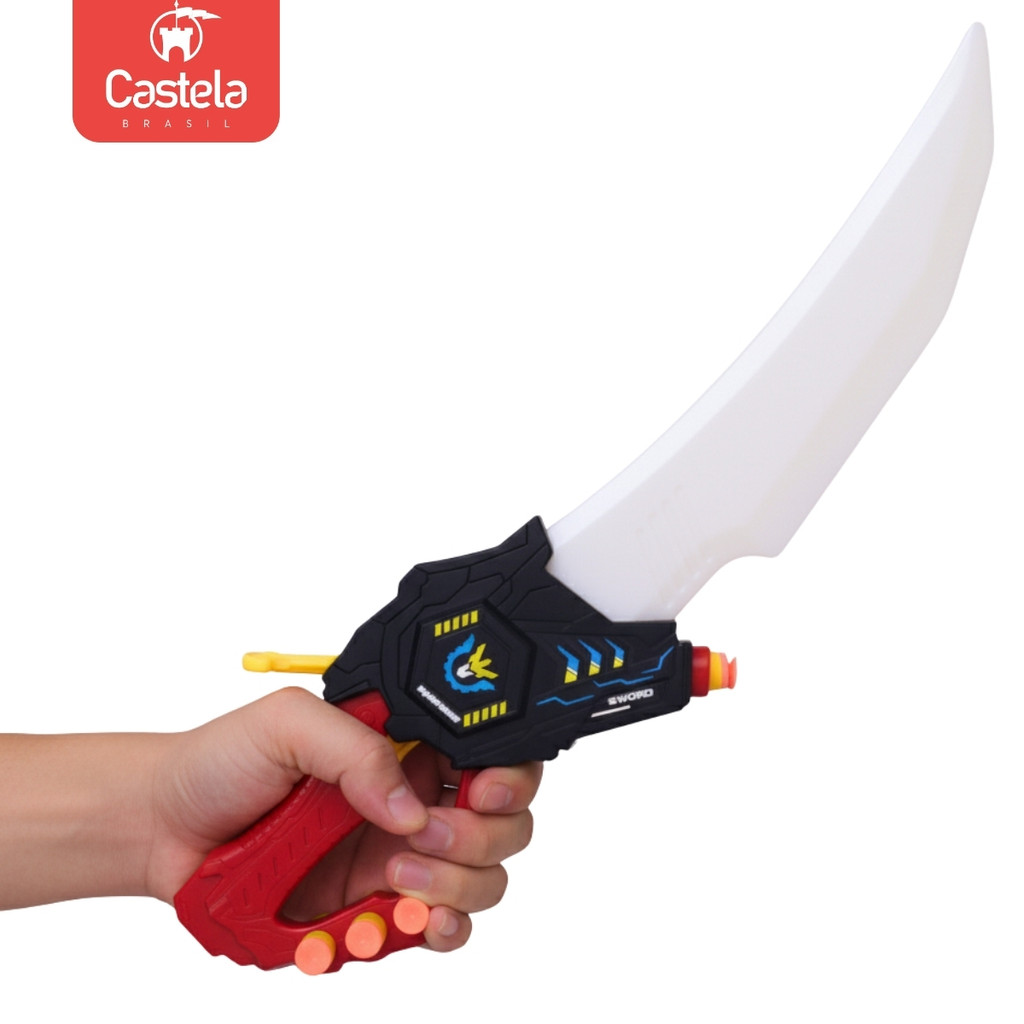 Espada Lançador de Dardos Vermelho Som Luz Manual - Castela