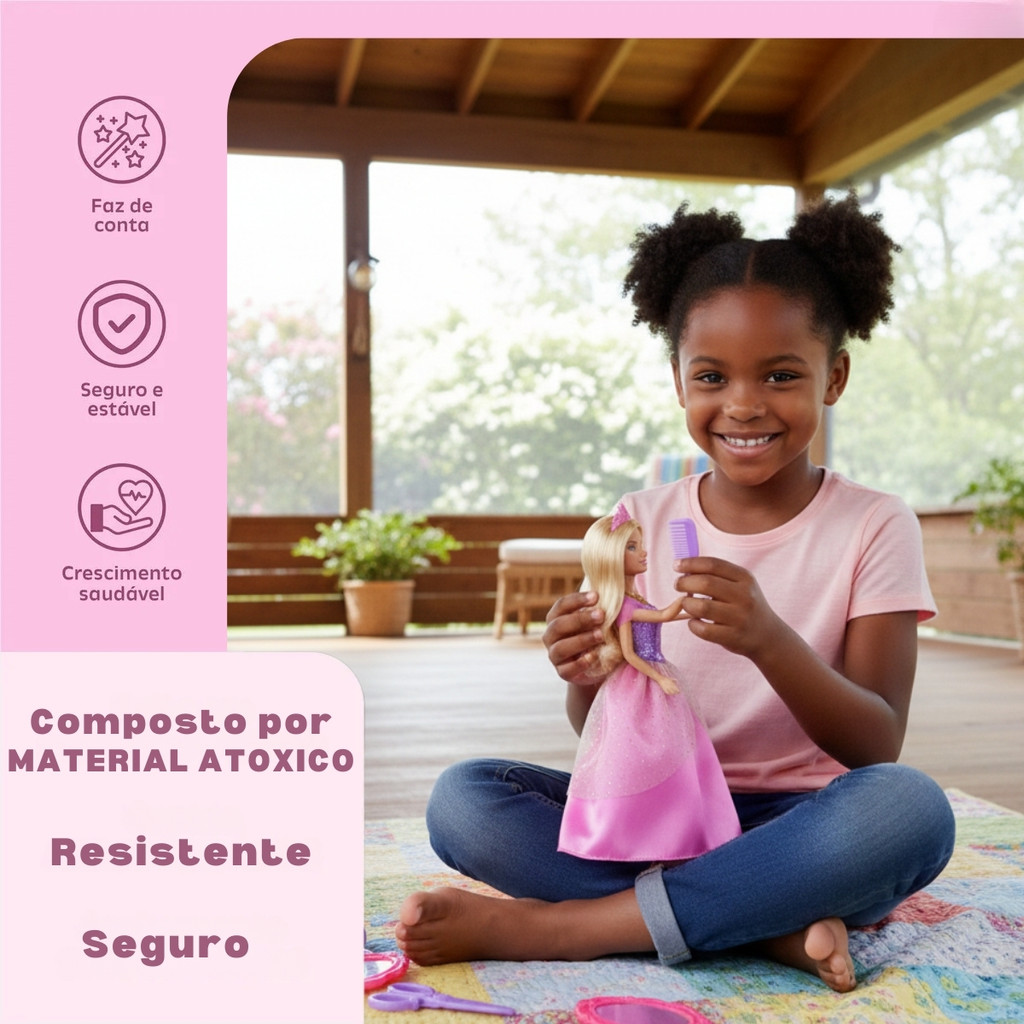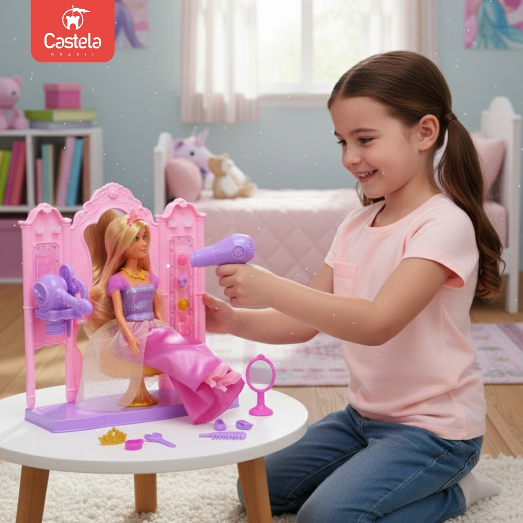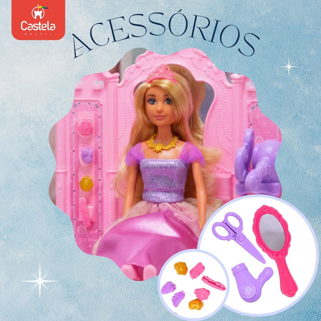 Boneca Anlily Coleção Princesa E Camarim Acessórios Vestido Rosa - Castela