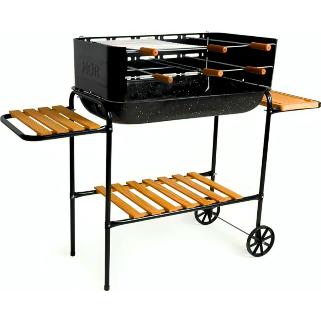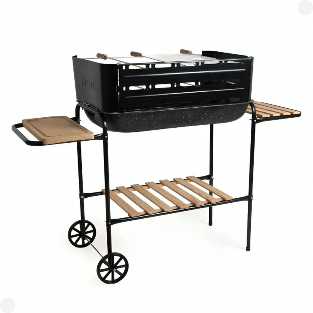 Churrasqueira Premium Móvel Rodeio Bacia Esmaltada Grelha Rodinha e Grade Completa - Mor