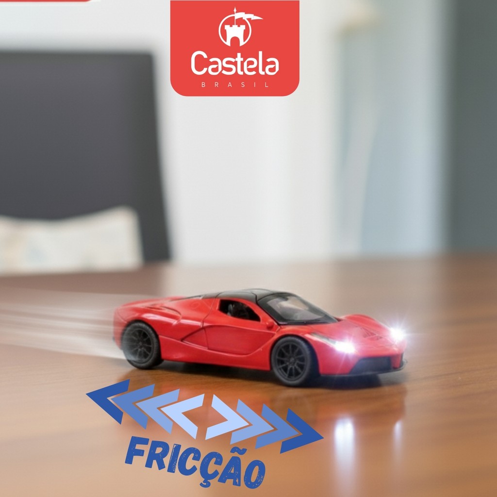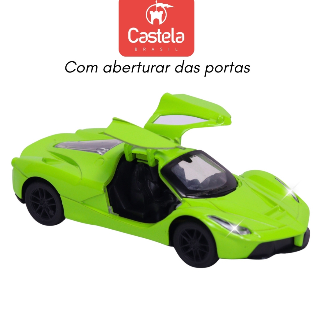 Carrinho Esportivo Miniatura De Metal 1:32 C/ Luz e Som Portas Articuladas Castela