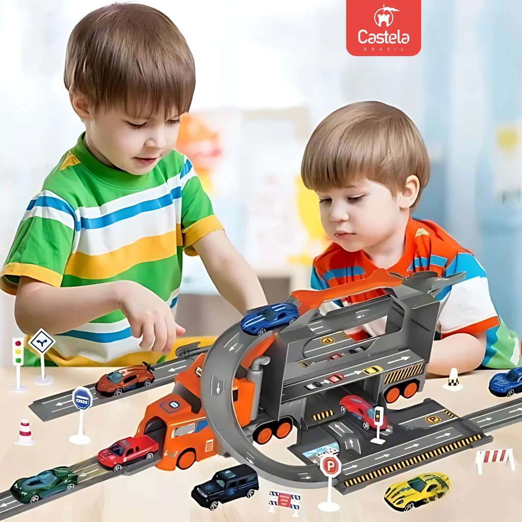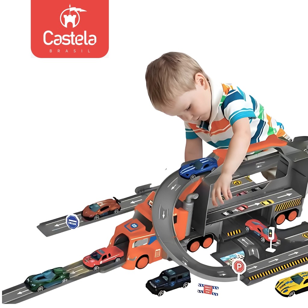 Caminhão Pista Brinquedo 5 Carrinhos Estacionamento Carro Divertido Castela