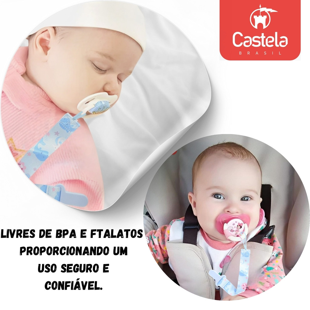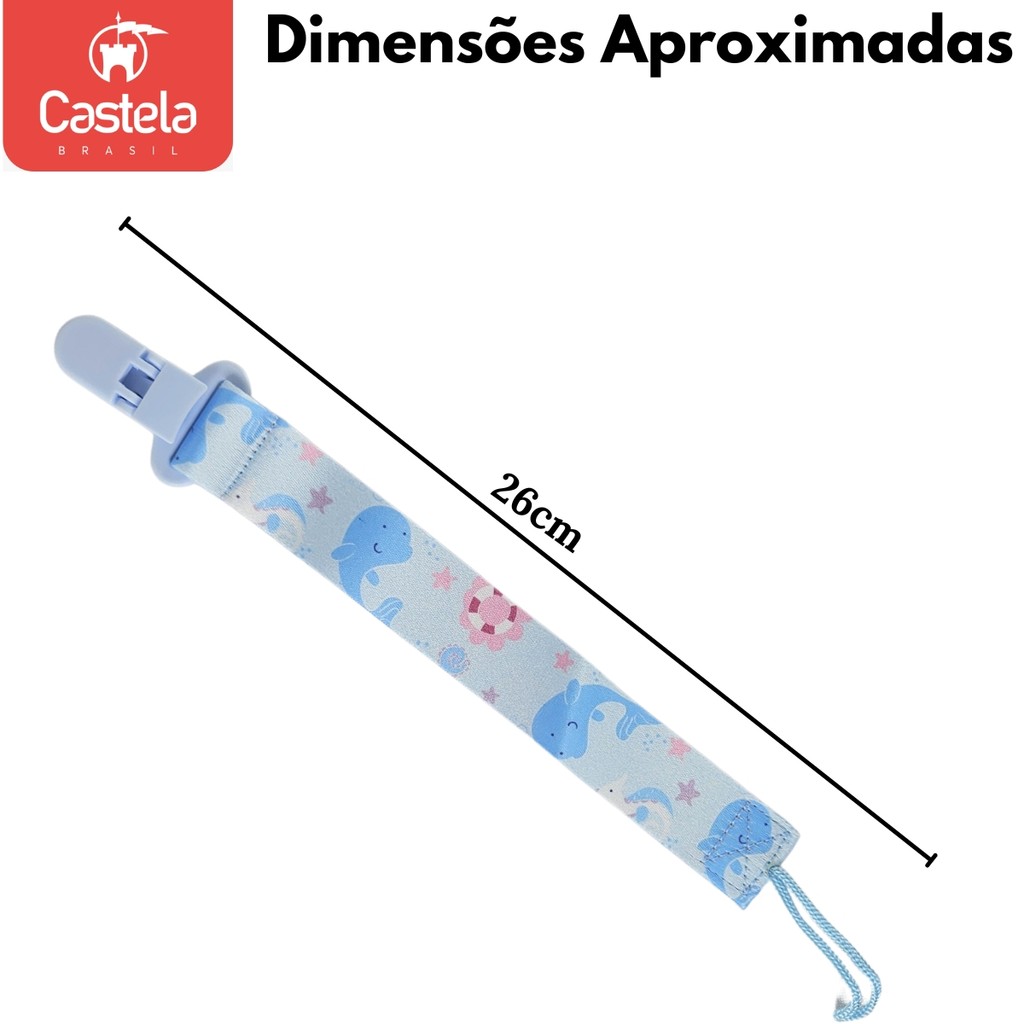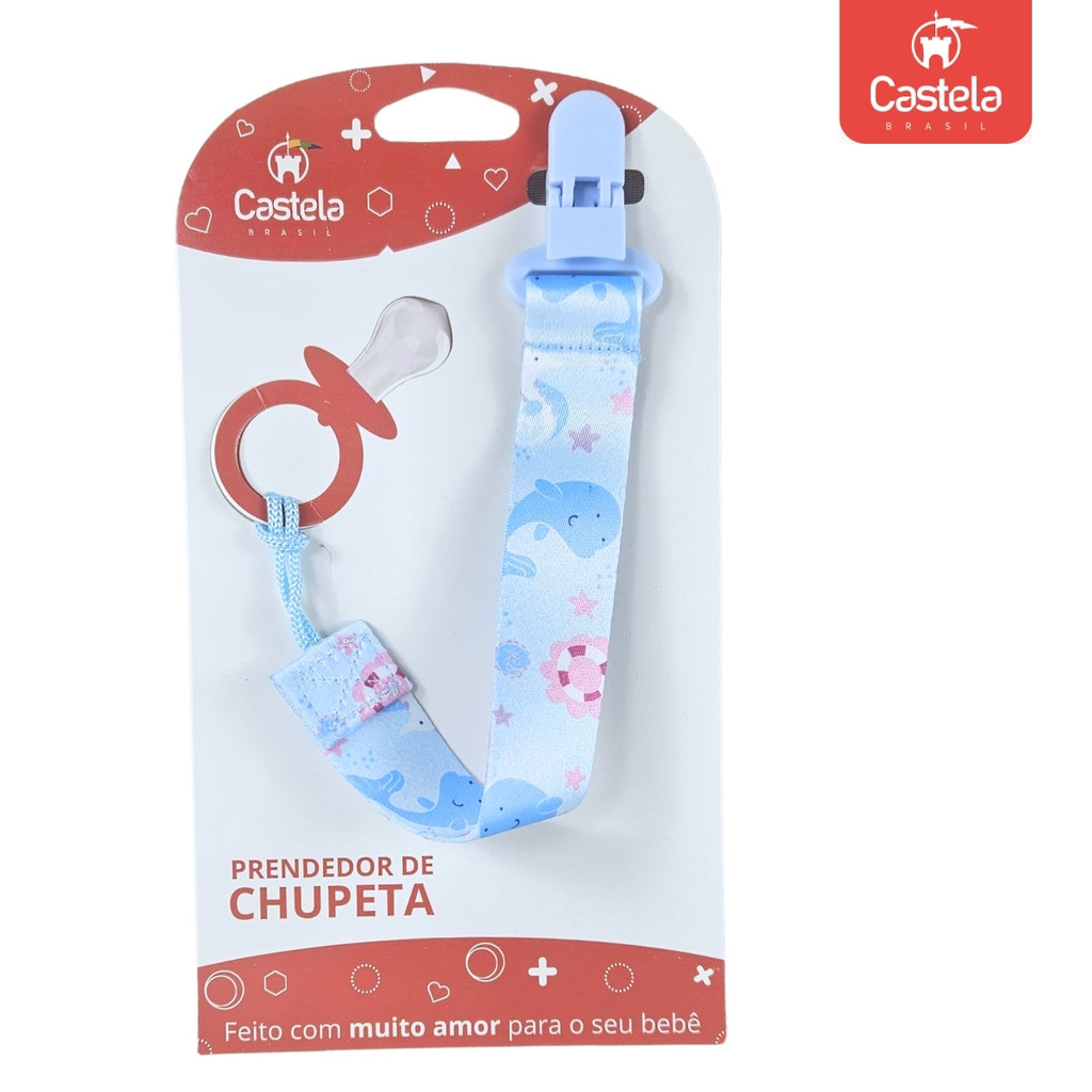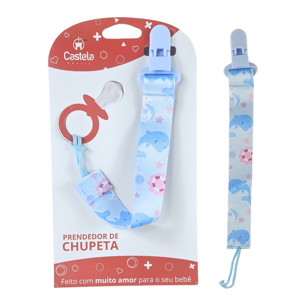 Prendedor de Chupeta baleia Azul Com Trava Clipe Livre BPA - Castela