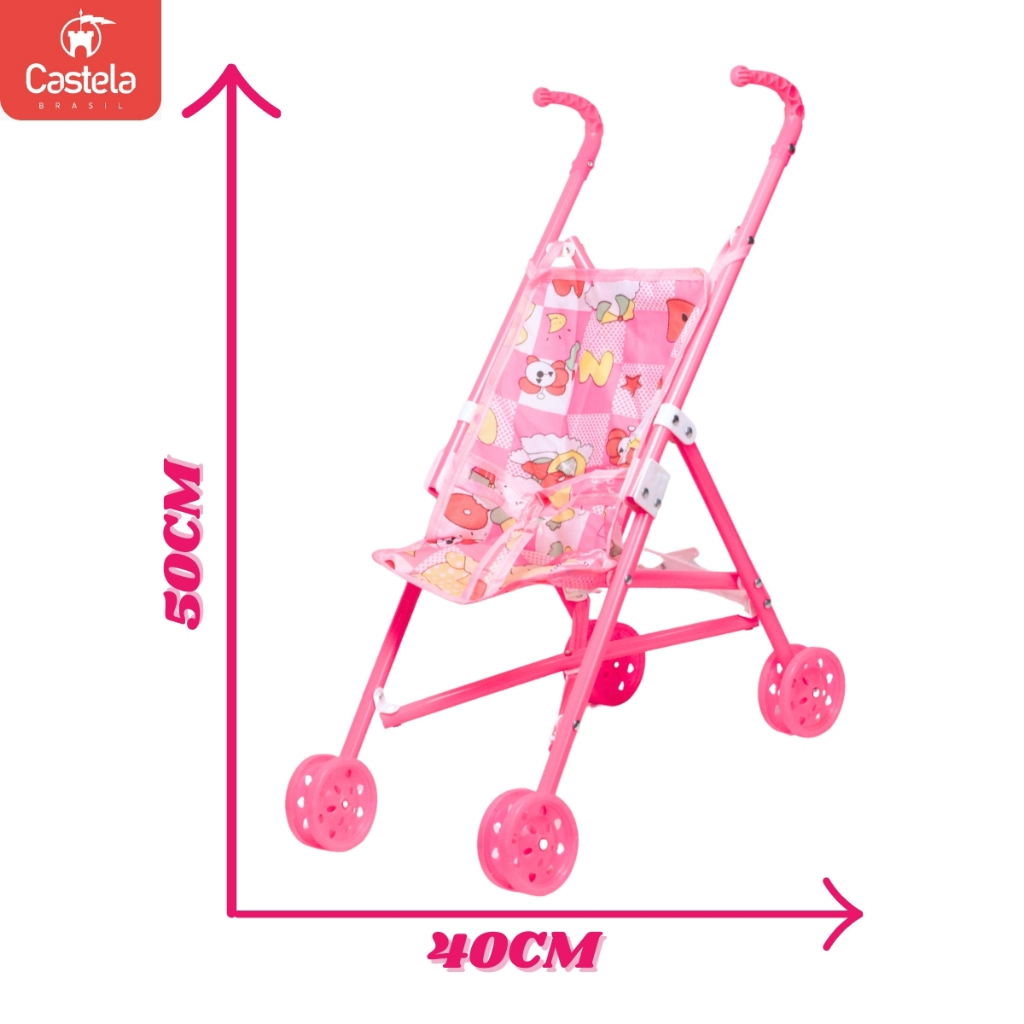 Carrinho de Boneca Dobrável em Tecido Infantil Diversão Passeio Bebê - Castela