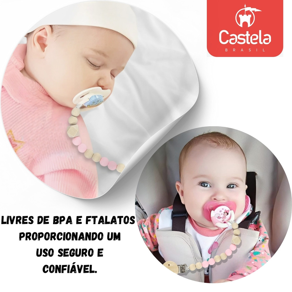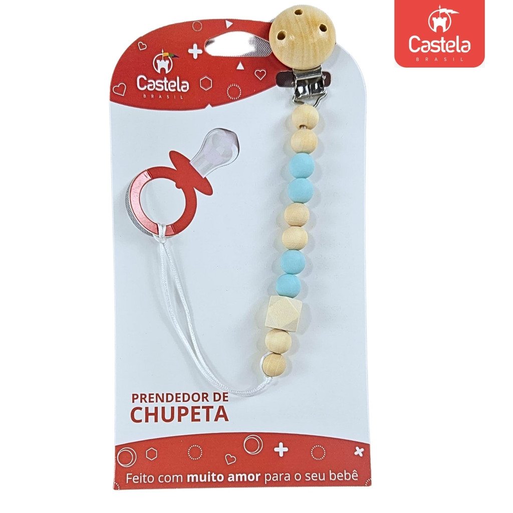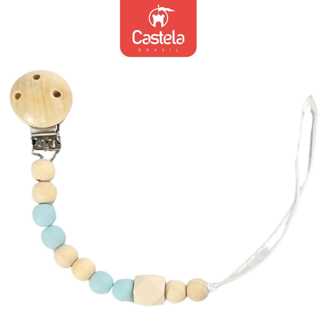 Prendedor de Chupeta Bambu Com Trava Clipe Livre BPA Azul - Castela