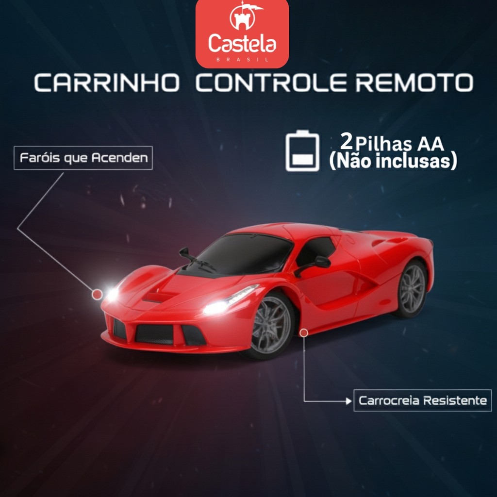 Brinquedo Carrinho de Controle Remoto Esportivo Vermelho C/ Luz 1:16 - Castela