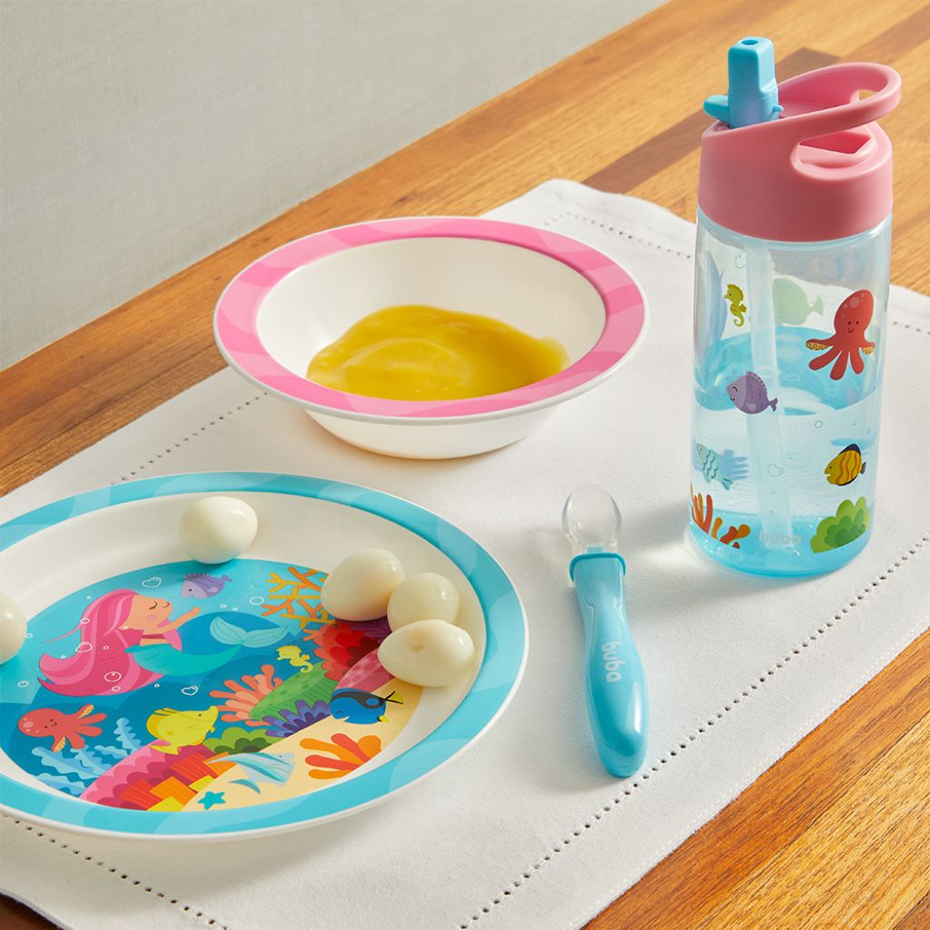 Conjunto Pratinho E Tigela Bowl Aventuras Sereia Introdução Alimentar 15318 15322 Buba