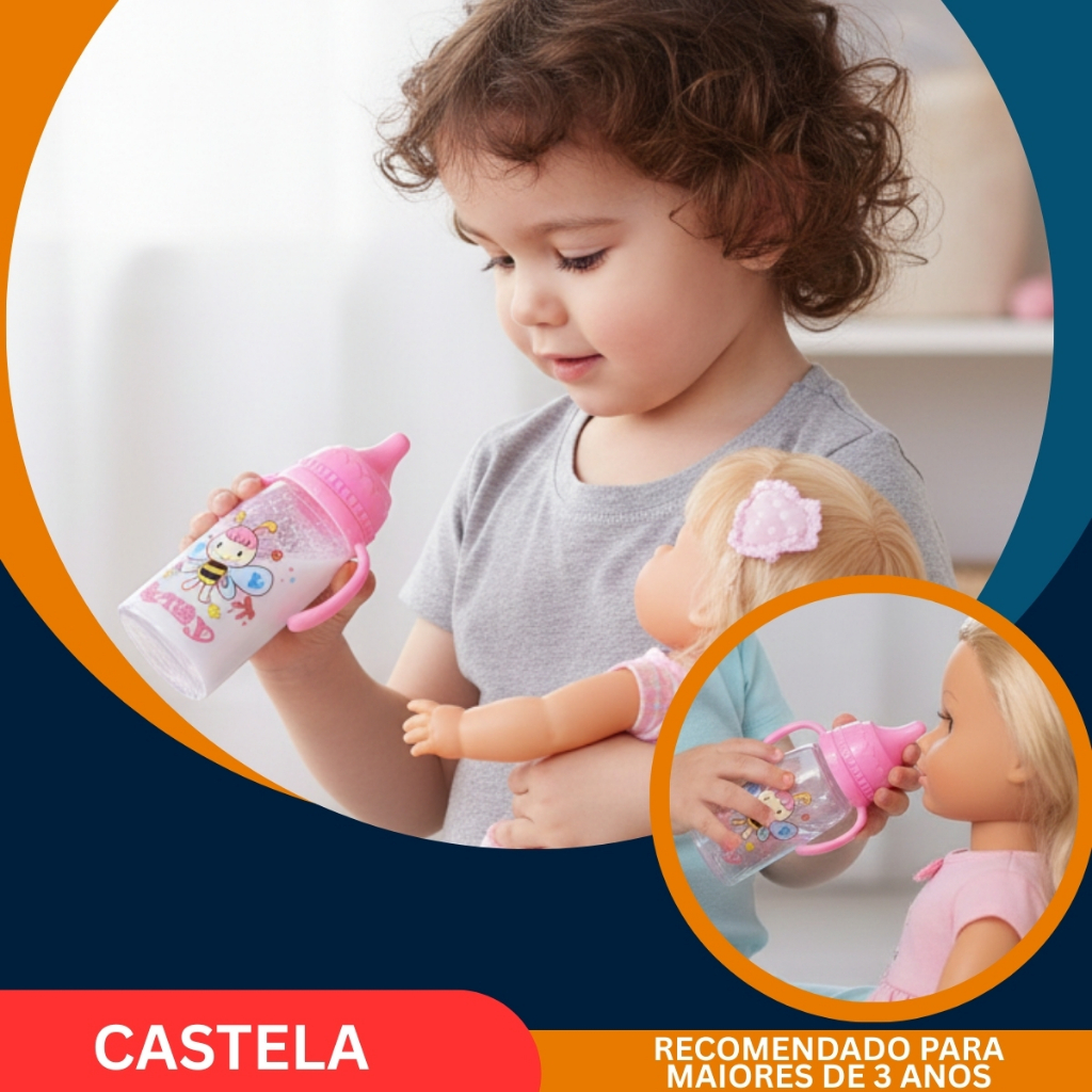 Mamadeira Mágica com Leite para Bonecas de Brinquedo Castela