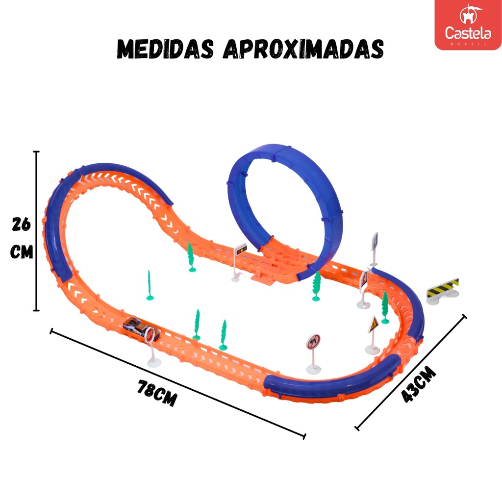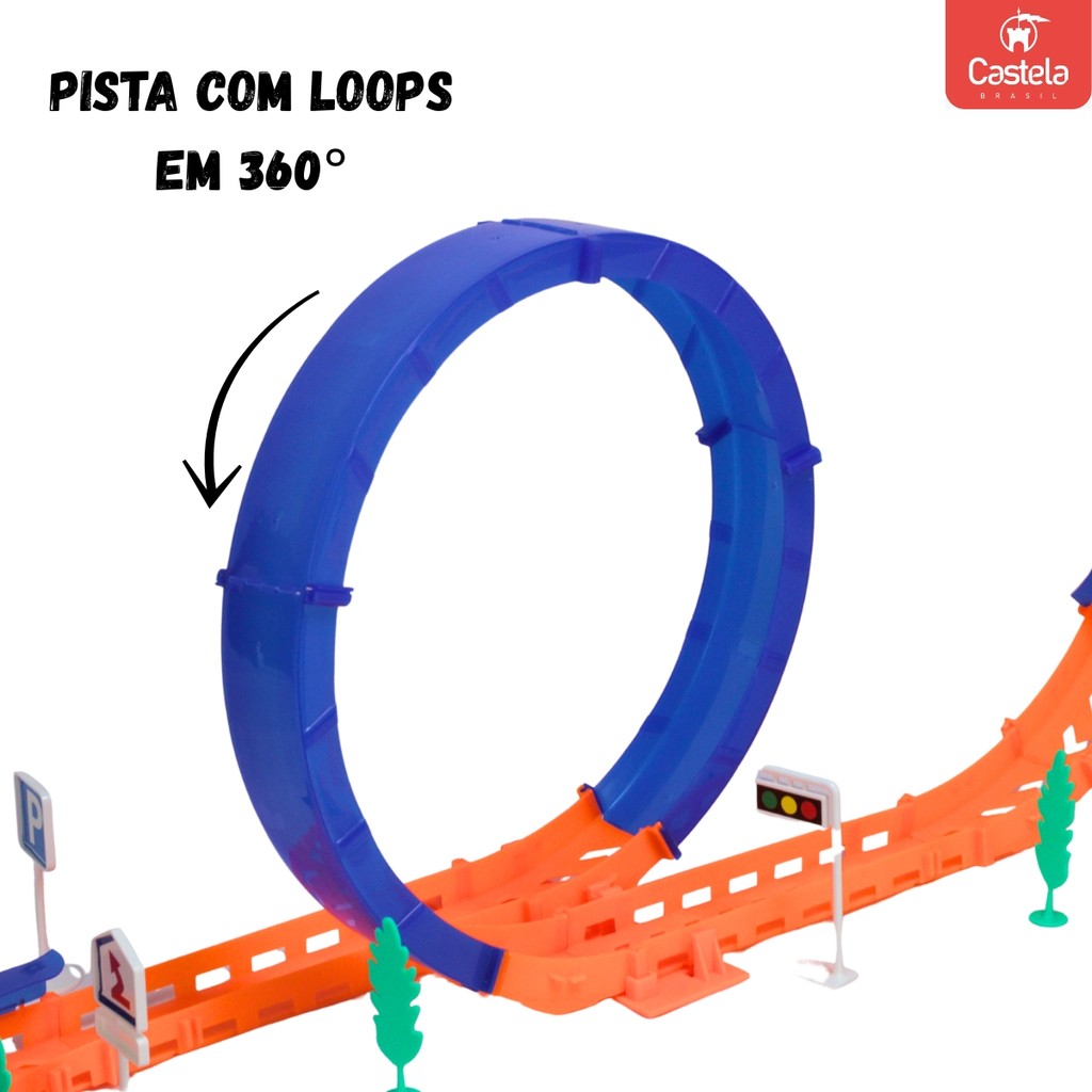Pista Carrinho de Corrida Alta Velocidade Loop 360° Luz 40 Peças - Castela