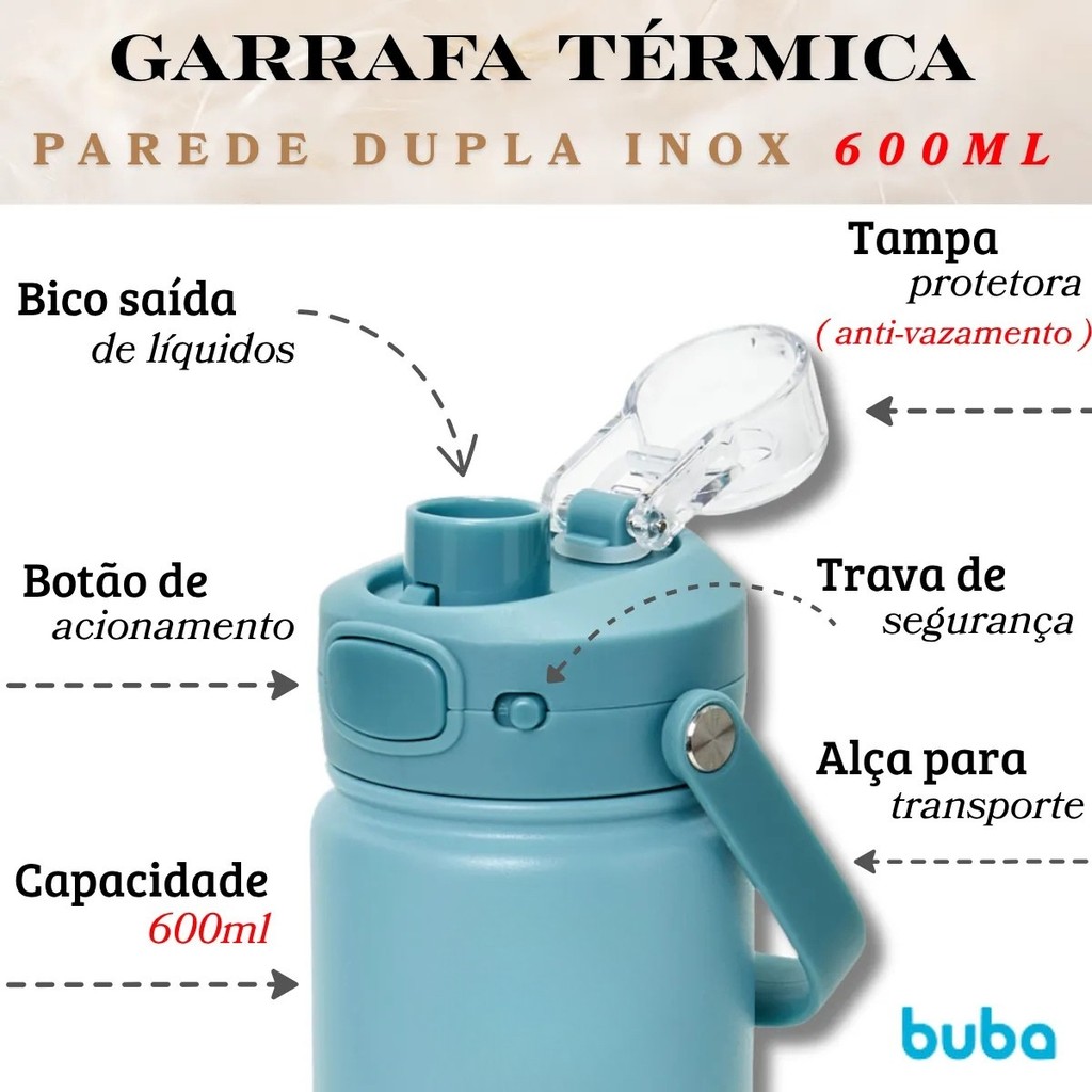 Garrafa Copo Térmico Parede Dupla Verde 600ml - Buba