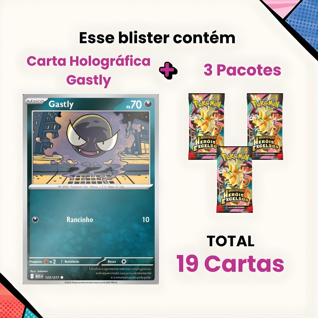 Blister Triplo Pokémon Gastly Me02.5 Heróis Excelsos 19 Cartas Gastly