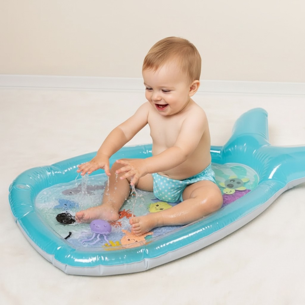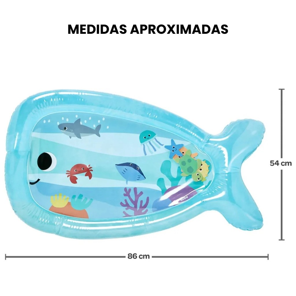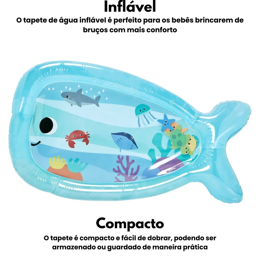 Tapete Sensorial para Tummy Time Splash Inflável Água Bichinhos Coloridos Flutuantes - Buba