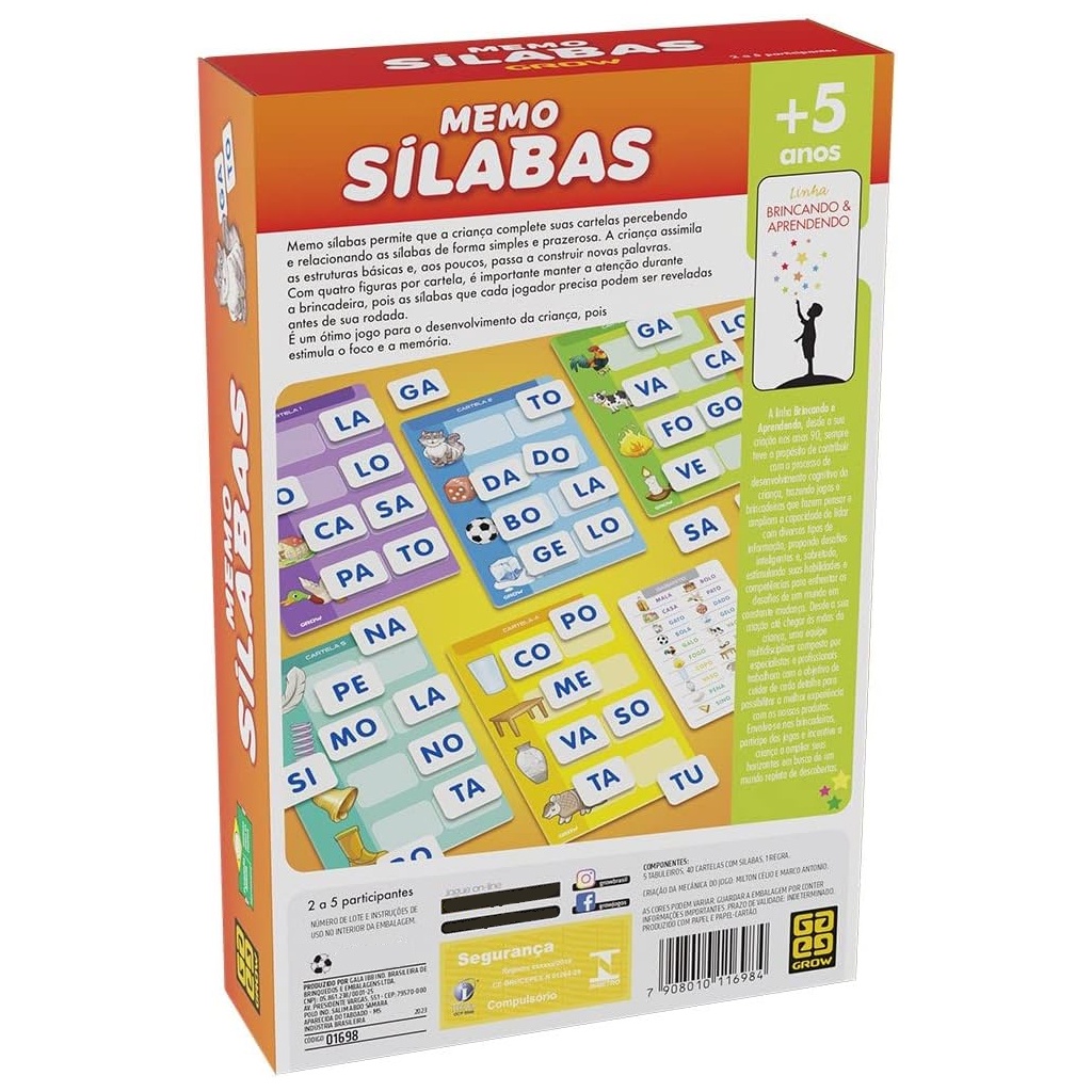 Jogo Educativo Memória Sílabas 01698 - Grow